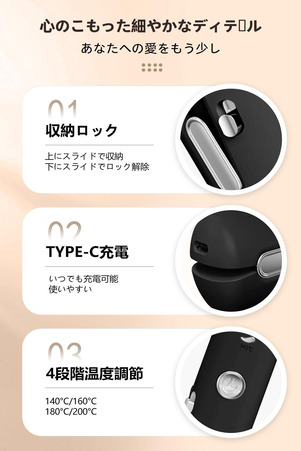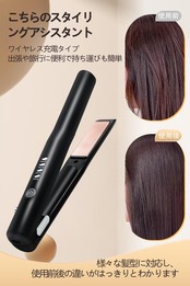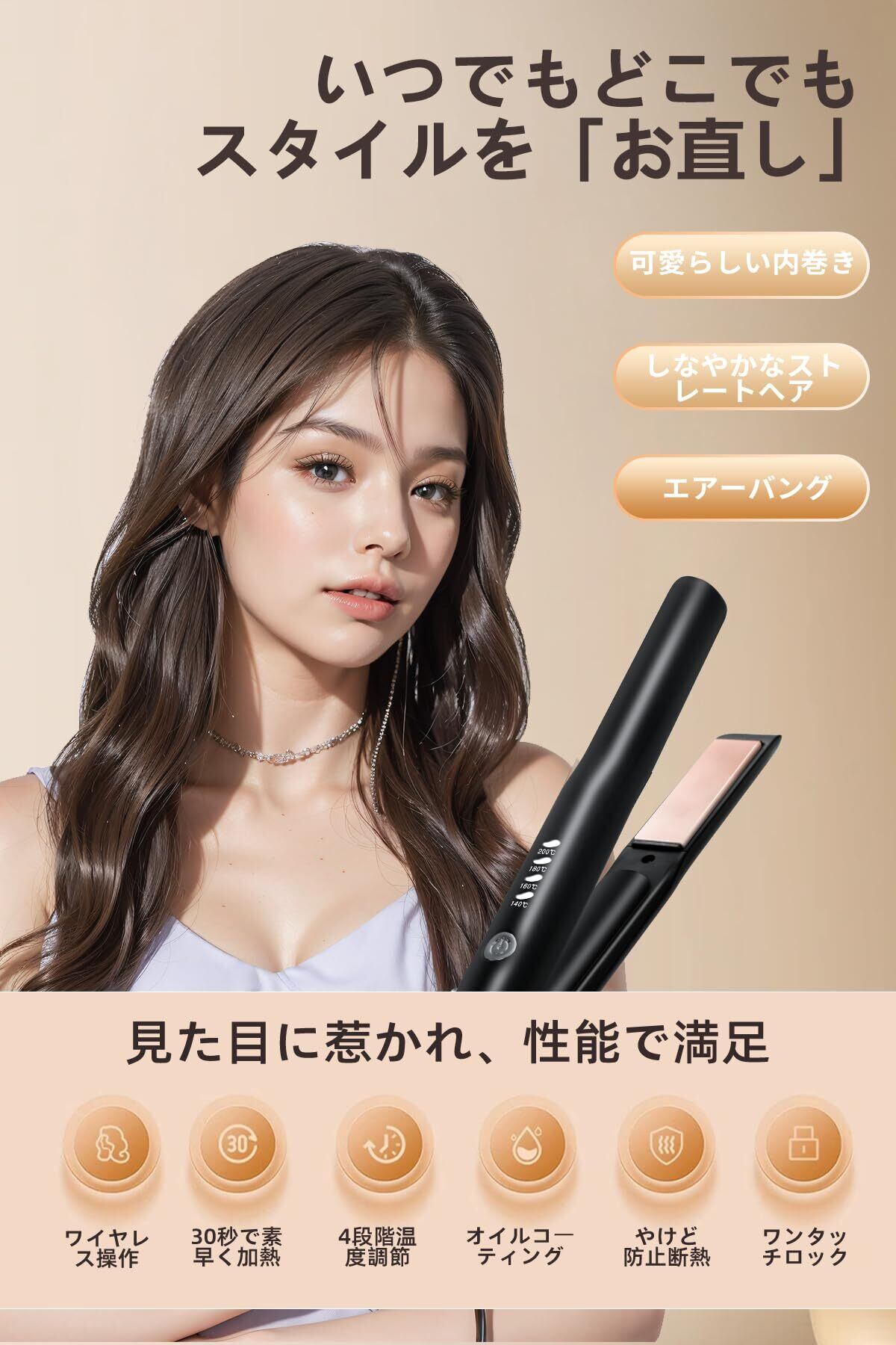 【2022最新】ヘアアイロン コードレスヘアアイロン 髪にやさしいマイナスイオン機能、髪質に合わせた温度調節、コードレスでどこでも使える 忙しい朝でもスピード仕上げ ストレートアイロン Black | カウカウ物販