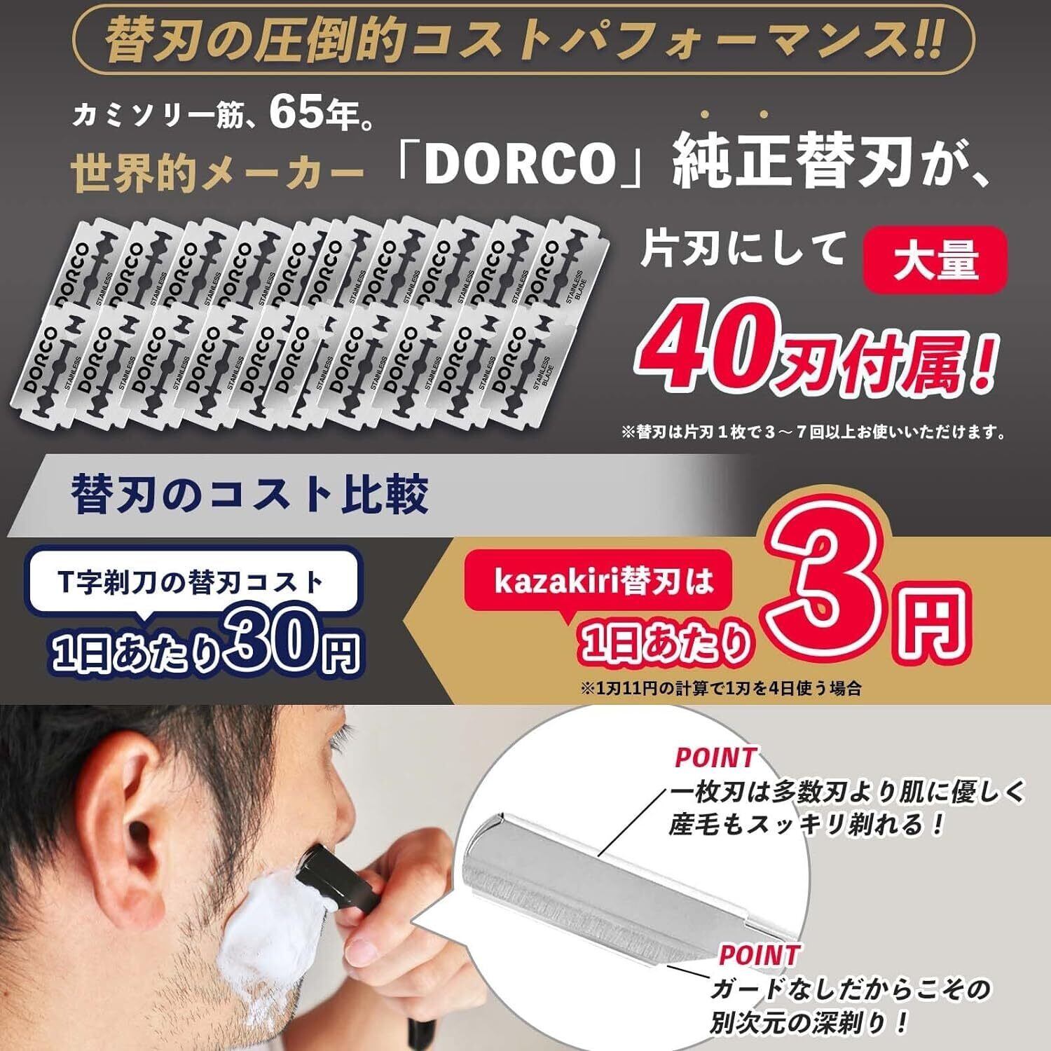 Kazakiri カミソリ 剃刀 【プロ理容師監修x感動深剃り】 髭剃り 顔剃り 替刃40刃(20枚)付き メンズ 西洋 一枚刃 説明書付き ブラック カザキリ