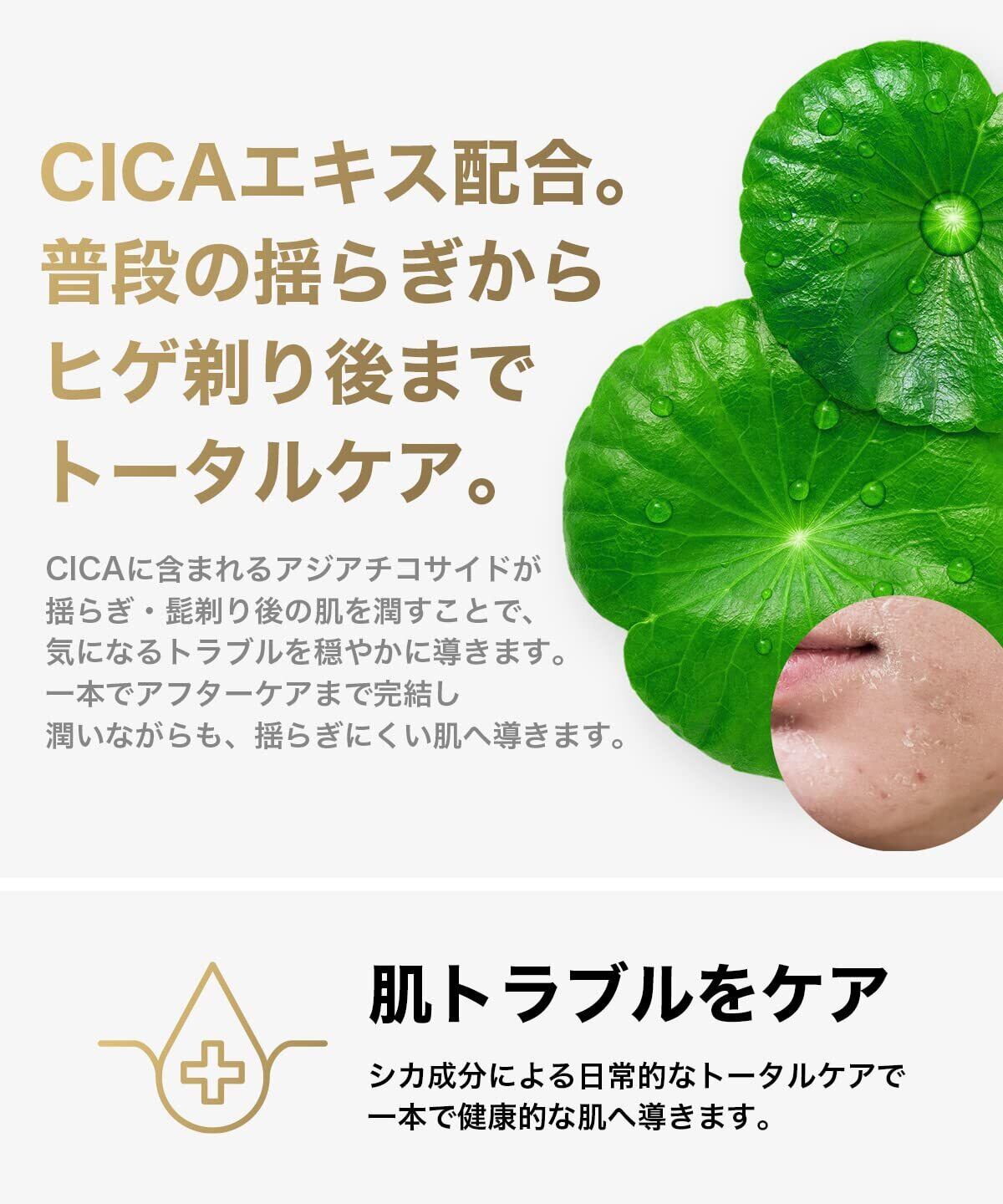 【シカ(ツボクサエキス)配合で揺らぎ肌をカバー】肌の揺らぎサポートに特化したシカエキスを配合し、穏やかな肌へと導きます。メンズ・レディース問わずご使用いただけます。