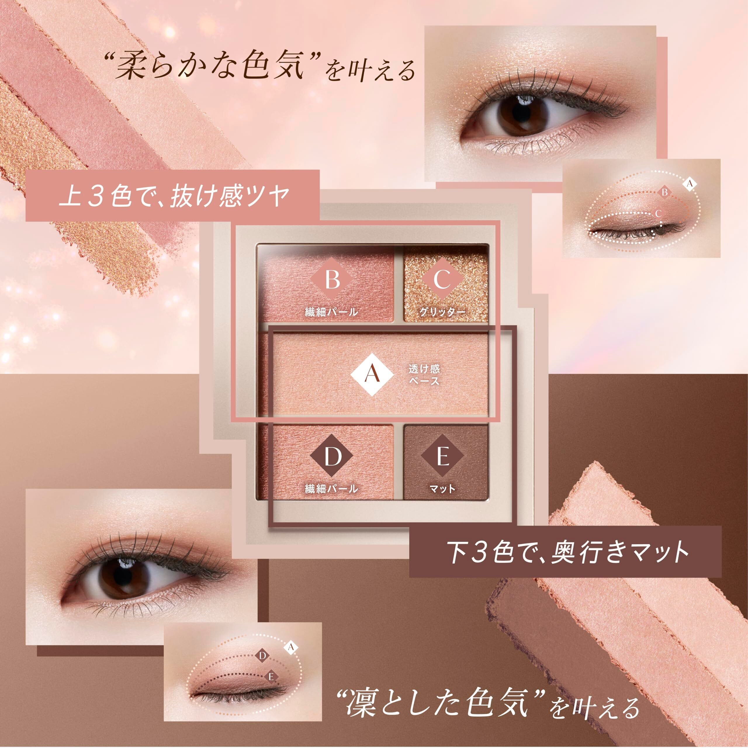 1 つのパレットで 2 つの対照的な目もとを叶える、4 質感の 5 色セットアイカラーです。 多質感のベースを自在に組み合わせて、なりたい雰囲気や気分に合わせて印象チェンジを楽しめます。