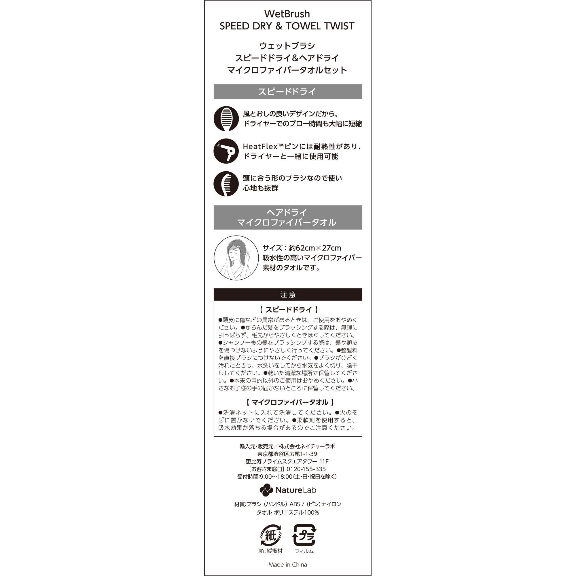 軽く簡単に美しく、スピーディーに指通りの良い髪に整えられる速乾ブラシ。適度な硬さのブラシピンで、どんな髪質もキレイに整えます。吸水性の高いマイクロファイバー素材のタオル付き限定セット。
