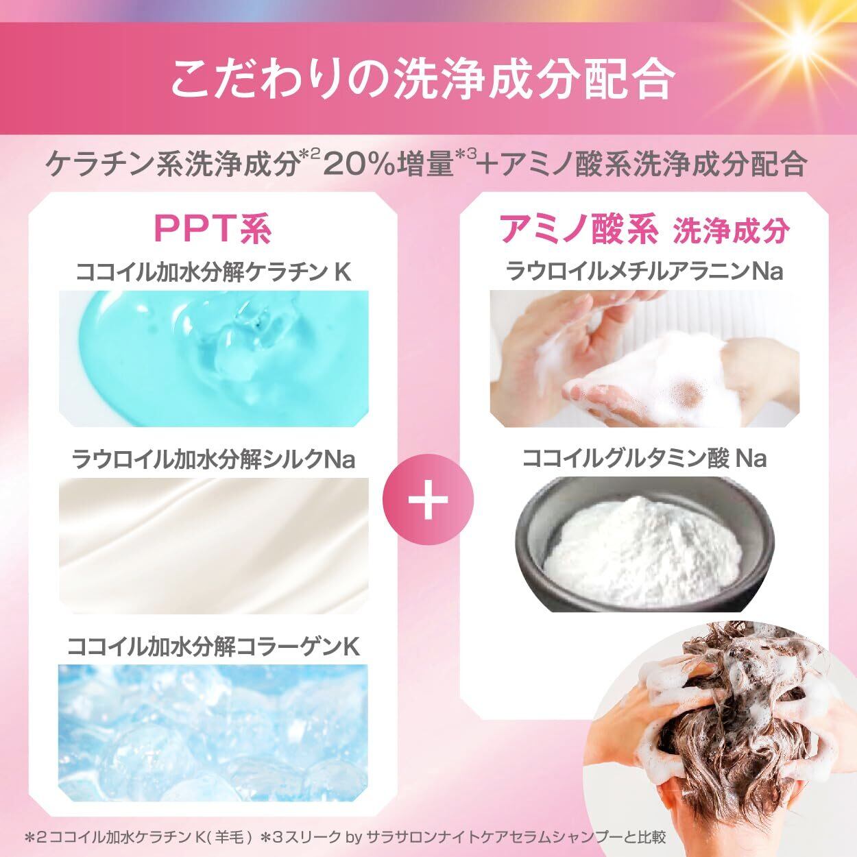 パサつき・うねりに、髪の内側と外側にWのアプローチ。保湿成分+補修成分+整髪成分を配合し、まとまりのある美しい髪へと導きます。