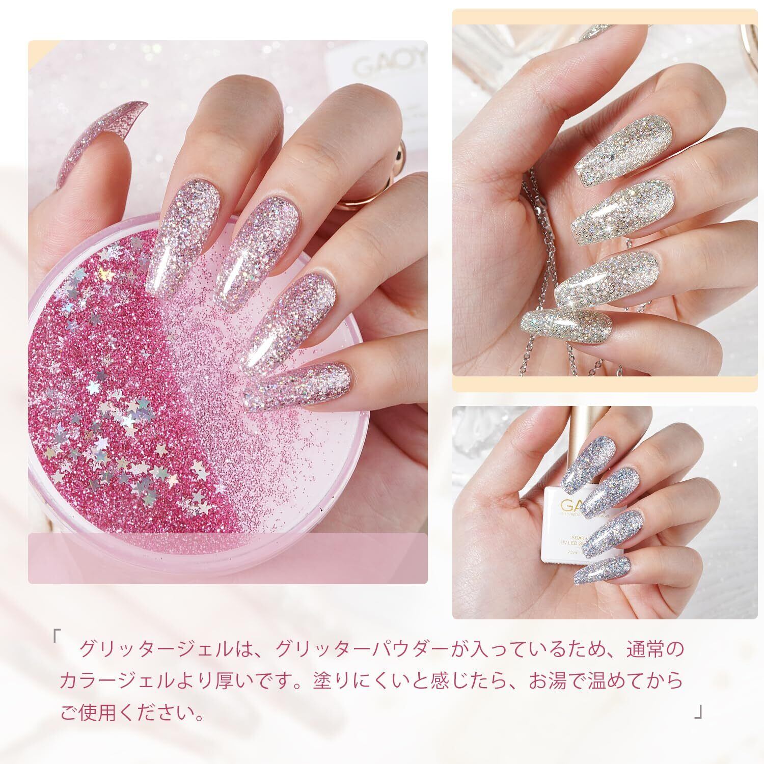 GAOY ジェルネイル カラージェルセット グリッター シャイニング ネイル ブラック シルバー ピンク 6色セット UV-LED対応 ポリッシュタイプ セルフネイル