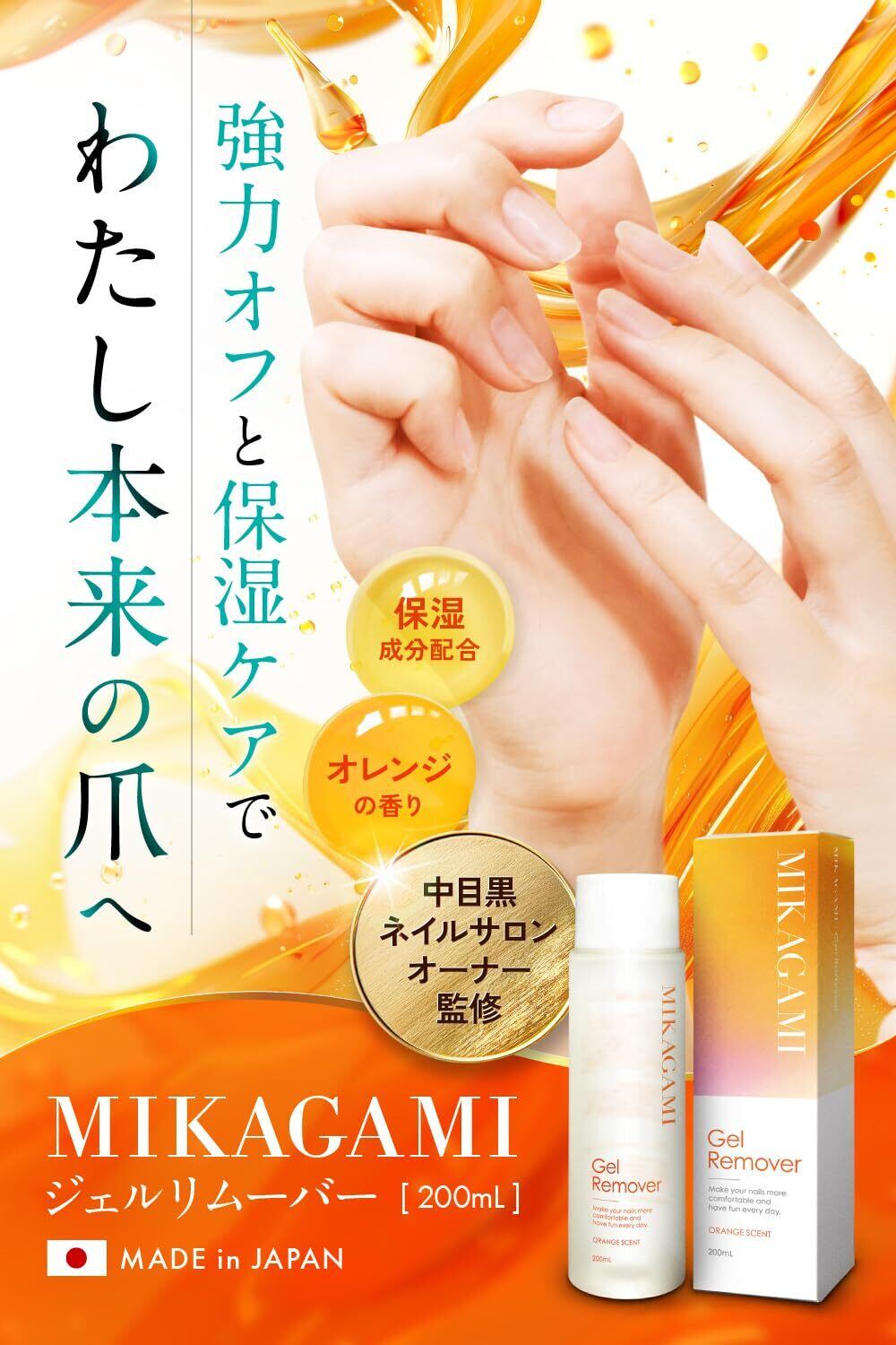 【オレンジ香る本格派ジェルリムーバー】中目黒ネイルサロンオーナー監修、オレンジの香りが特徴のジェルリムーバーです。プロからセルフまで、ジェルネイルに欠かせないネイル用品です。