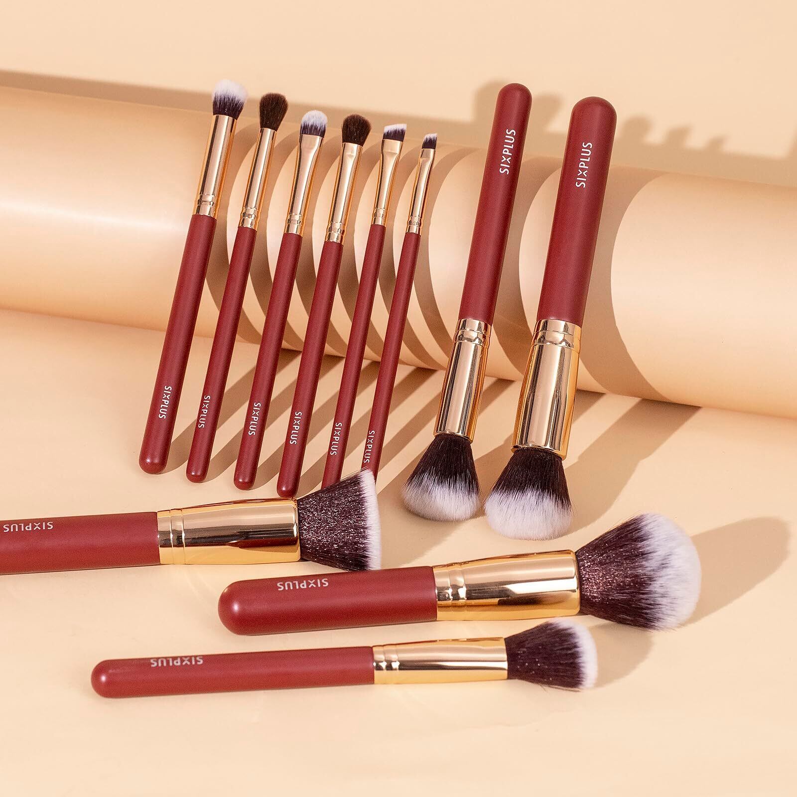 【在庫セール】SIXPLUS シックスプラス 11本メイクブラシセット 貴族ゴールド クラシックシリーズ メイクブラシ 化粧ブラシ エレガンス 柔らかい 化粧ポーチ付き ワインレッド | カウカウ物販