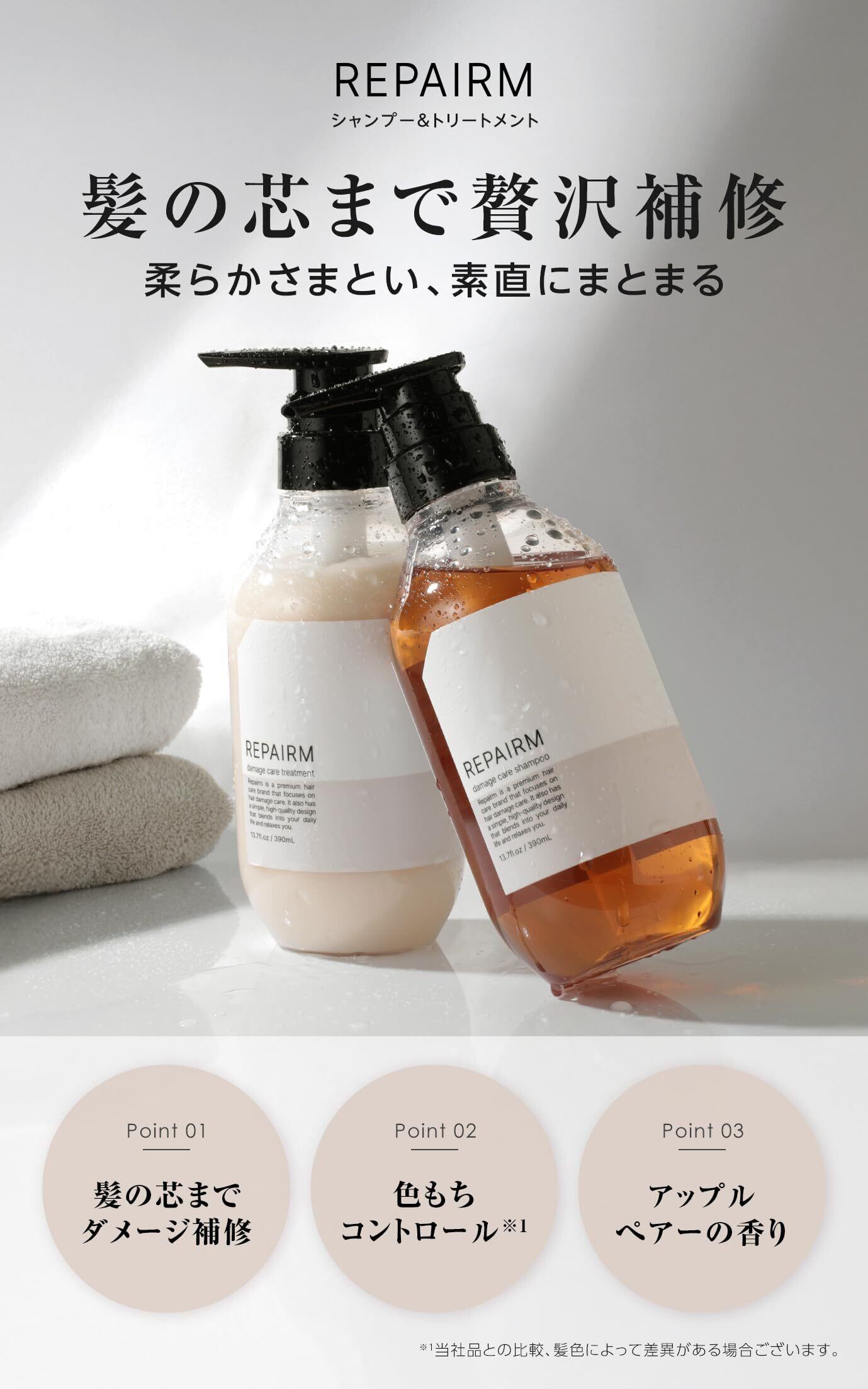 REPAIRM シャンプー トリートメント セット 【15種類のたんぱく質配合ダメージ補修×色持ちコントロール×各390ml】ボトルセット