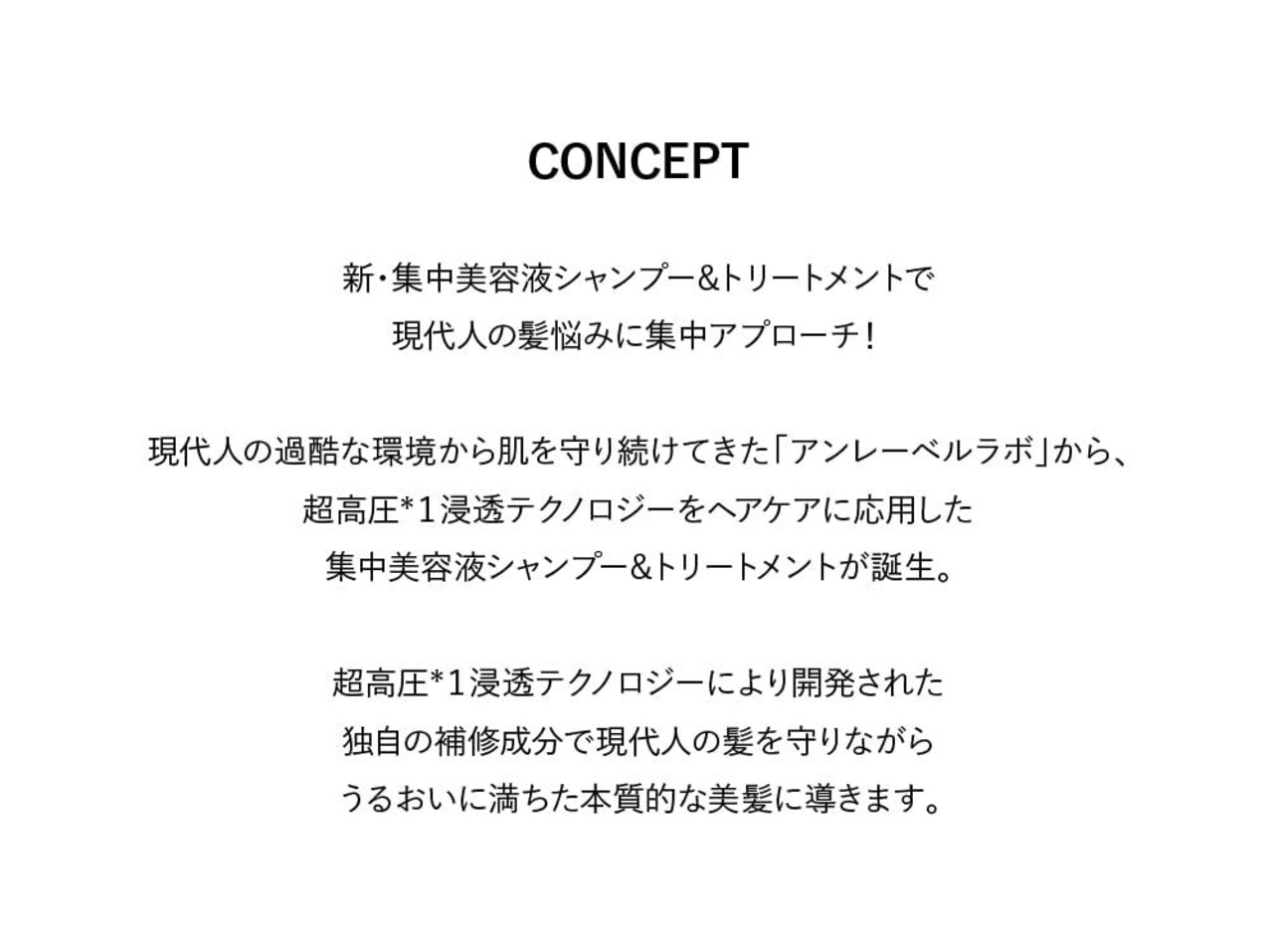 スキンケアで培われたアンレーベルの超高圧※1浸透テクノロジーで大人のうねり髪・ツヤ不足に集中アプローチ。