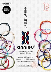 やさしく結ぶ「ヘアゴム」 annieu【アンニュ】/[日本製] 「今日も、結ぼう。」 髪の毛を、きゅっと結んでも からまりにくくて、するっとはずせる。 だから、髪へのダメージも少ない。 『美容師が考えました』 編み込んだゴムのデコボコが、髪をやさしく結びます。 annieu【アンニュ】は、ゴムを編み込むことで特有の凹凸をつくり、髪の毛を適度に押さえこみます。また、それぞれの接点で支えているので、するっとしたはずし心地を生み出しています。 そして、数本のゴムをあわせていることでカラフルなデザイン性を持つことが出来ました。アンニュは、デイリーユースの「ヘアゴム」であり、そのカラフルなラインナップは、ファッション性も兼ね備えた「ヘアアクセサリー」にもなります。