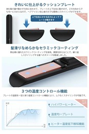 【クッションプレート】クッション性のあるプレートを採用し、プレートが上下し、余分な力を吸収し、むらなく圧力をかけることができるので摩擦を抑え、髪へのダメージを軽減。