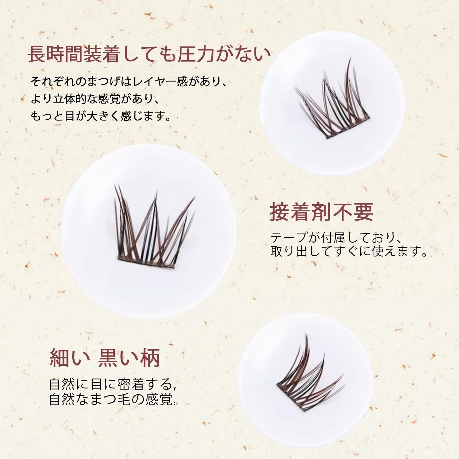 【ノリ不要!すぐピタまつ毛】このまつげ用のフェイクまつげは、根元に接着テープが付いているので、別途まつげ用の接着剤を使う必要はありません。忙しい朝やイベント時でも時間を節約できます。