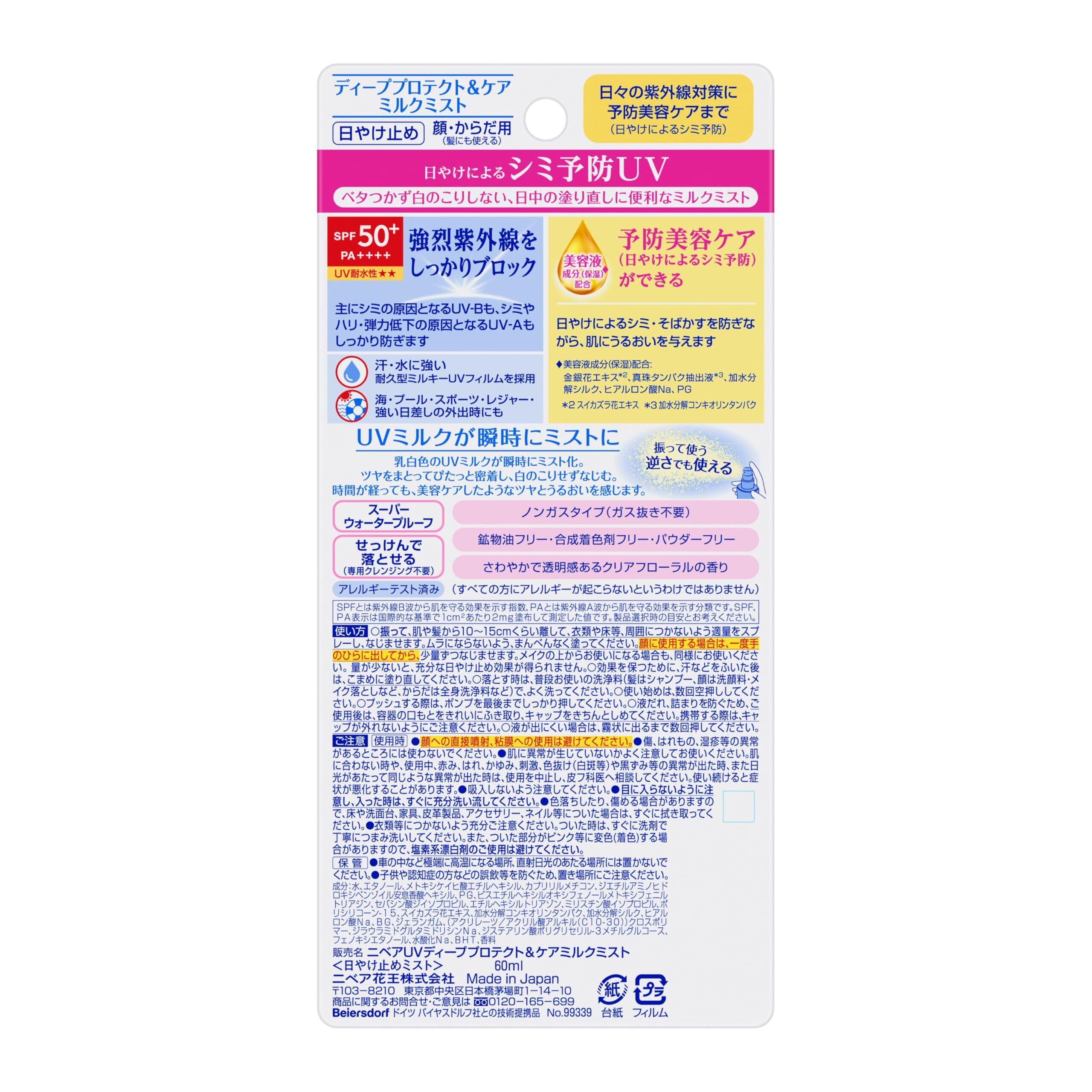 NIVEA ニベアUV ディープ プロテクト&ケア ミルクミスト 60ml 日焼け止め シミ予防 SPF50+