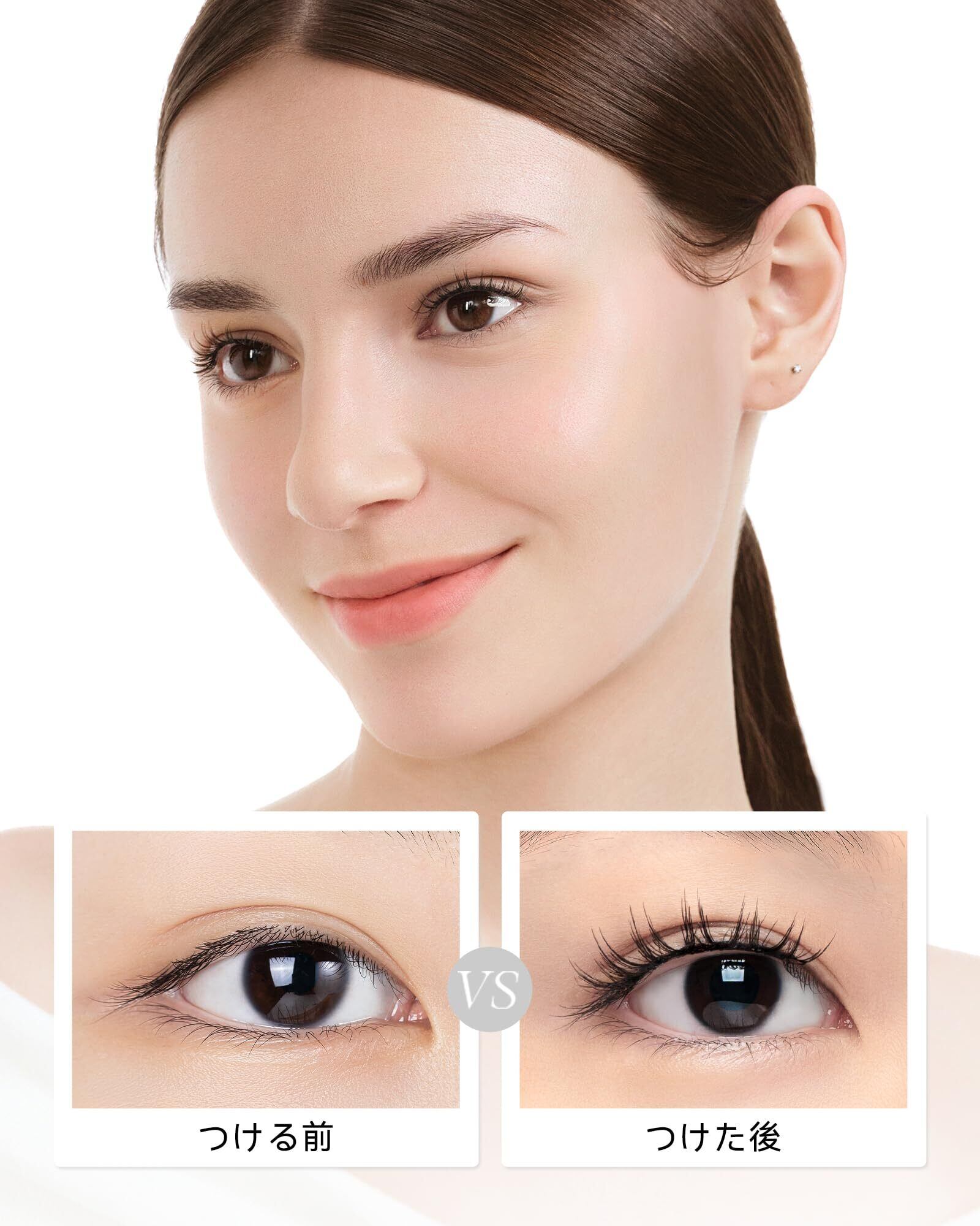 良質な動物実験フリー素材:動物実験フリー、清潔で、軽く、独特で快適。厳選した動物実験フリー素材による快適さ、柔らかい装着感を目に与えます。たっだ0.034gのつけまつげは、羽のようにふんわりで、目に呼吸感を与え、最高な快適さを手に入れます。(Tips:目はデリケートなので、つけまつげをつけたら、慣れるまで一定の時間が必要です)