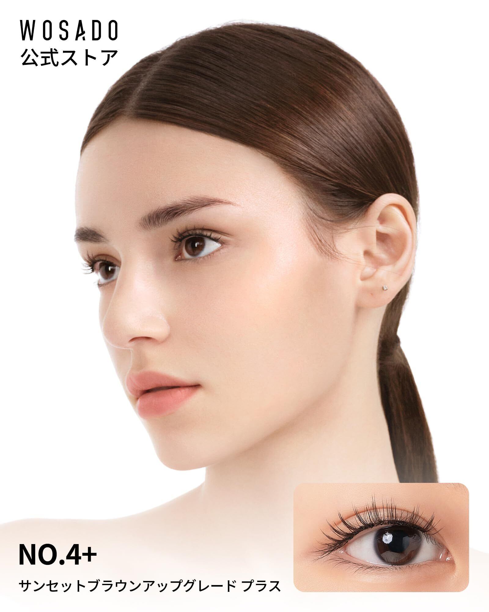 WOSADO マグネットつけまつ毛 一体型 、No.04+ サンセットブラウンアップグレード プラス、磁気 つけまつげ 、接着剤不要、ふんわり、すっぴん感、再利用可能、濃いメイク向き
