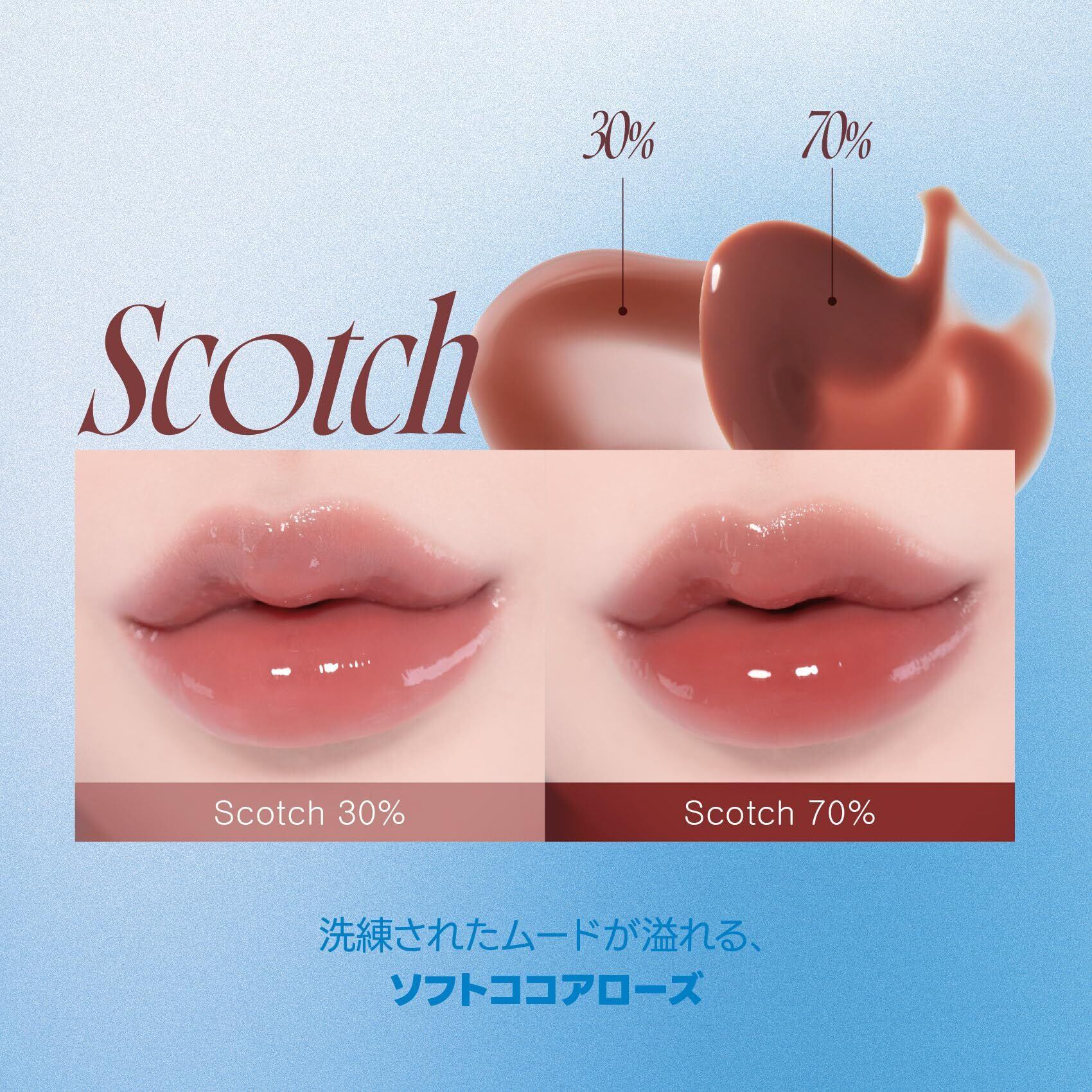 もちっとした3D立体光沢は同じ! ピュアな魅力を出したい日には30%,視線を集めたい日には70%であなたの求めるムードを演出してください。