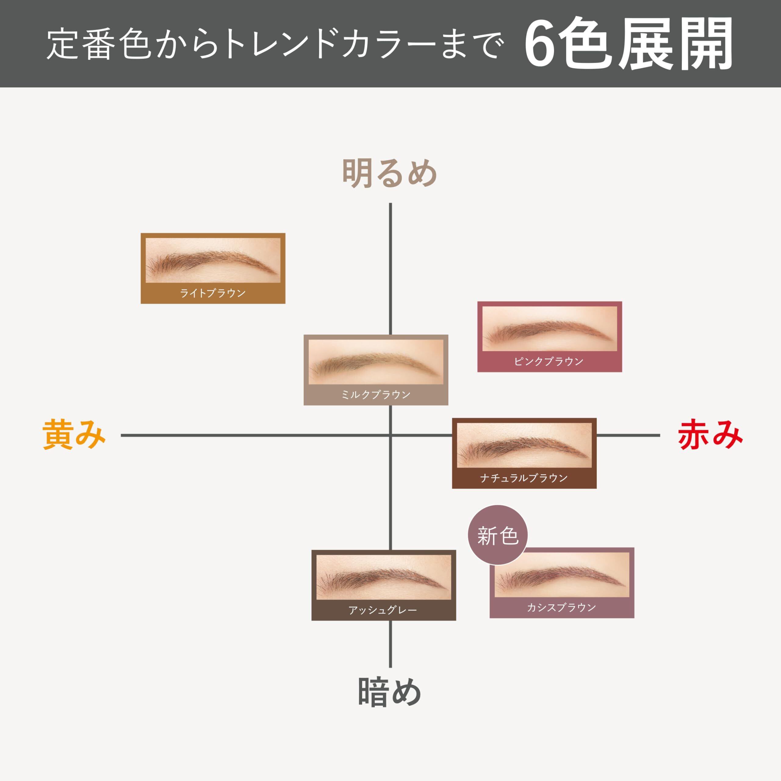 落ちにくいウォータープルーフ×スマッジプルーフ処方。 汗、水、皮脂に強い処方でふんわりキレイな眉を長時間キープ。