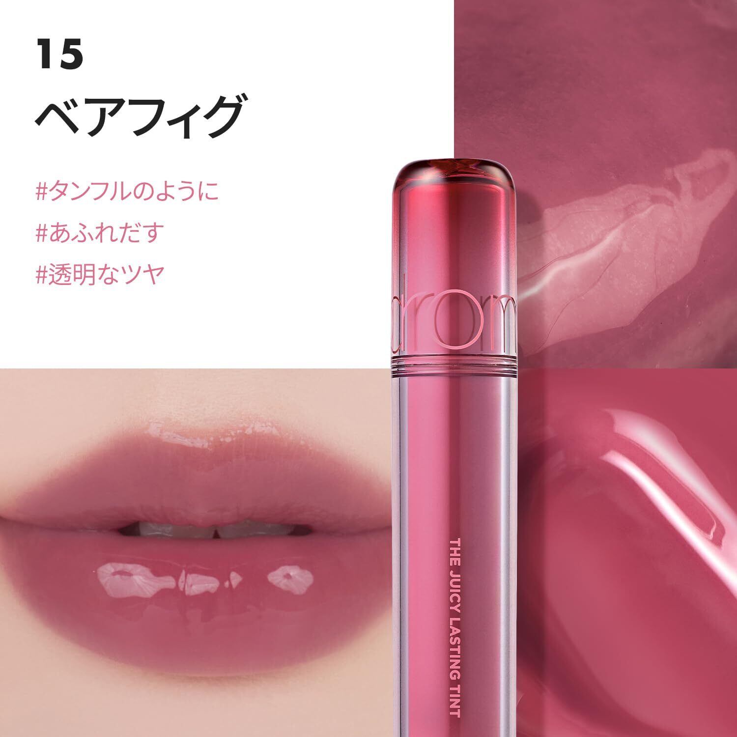 [rom&nd/ロムアンド] ザ ジューシーラスティングティント 高発色 色落ちしない 韓国コスメ 口紅 ツヤ感 リップ ティント ツヤプルリップ (15 ベアフィグ, ザ・ジューシー)