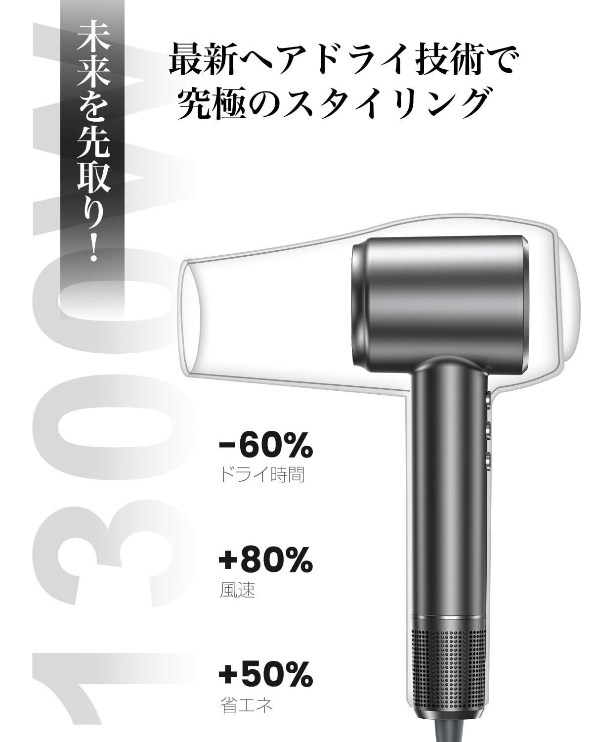 【プロも認める超高速モーターで、ドライ時間を最大60%短縮】BGBの速乾ドライヤーは最新の高速デジタルモーターを搭載し、従来のヘアドライヤーを凌ぐ風量を実現!髪を素早く乾かすだけでなく、スタイリング時間も大幅に短縮。忙しい朝や急いでいる時にも、プロのような仕上がりを簡単に実現できます。
