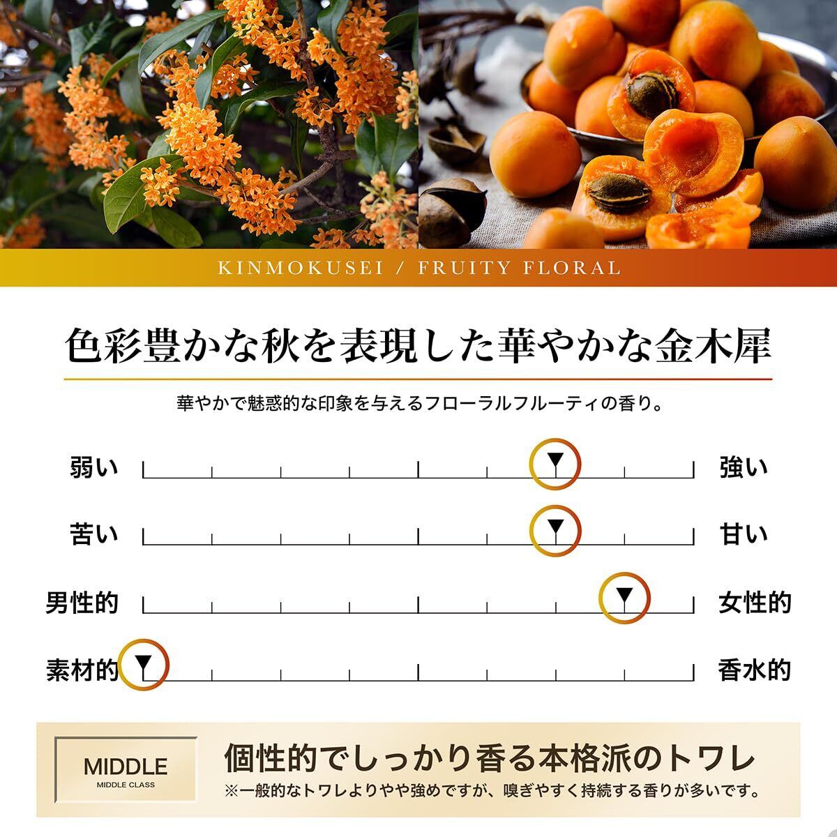 【秋の訪れを告げる金木犀の香り】三大香木の1つである金木犀を中心に、秋の訪れを表現したフルーティフローラル調の香り。柔らかな甘みと共に秋の訪れをつげる金木犀と、水々しい果実感溢れるアプリコットの香りに包まれる、色彩豊かな秋を表現しました。華やかで魅惑的な印象に加え、ほのかなゴージャスさを感じさせます。