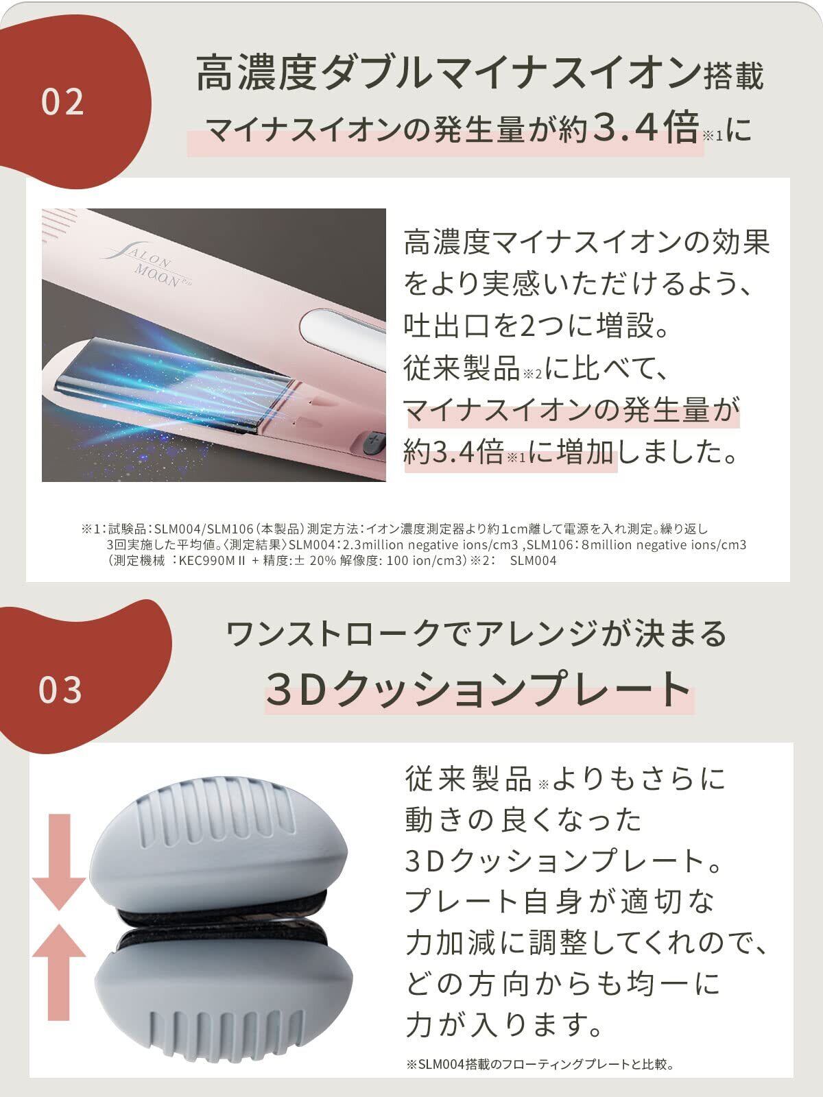 【マイナスイオン 発生器搭載】高密度マイナスイオン発生器を搭載しているので、髪のダメージを抑えながら ストレート カール スタイル にすることができる 髪が 痛みくい コテ アイロン です。痛まないヘアアイロン をお探しの方に◎