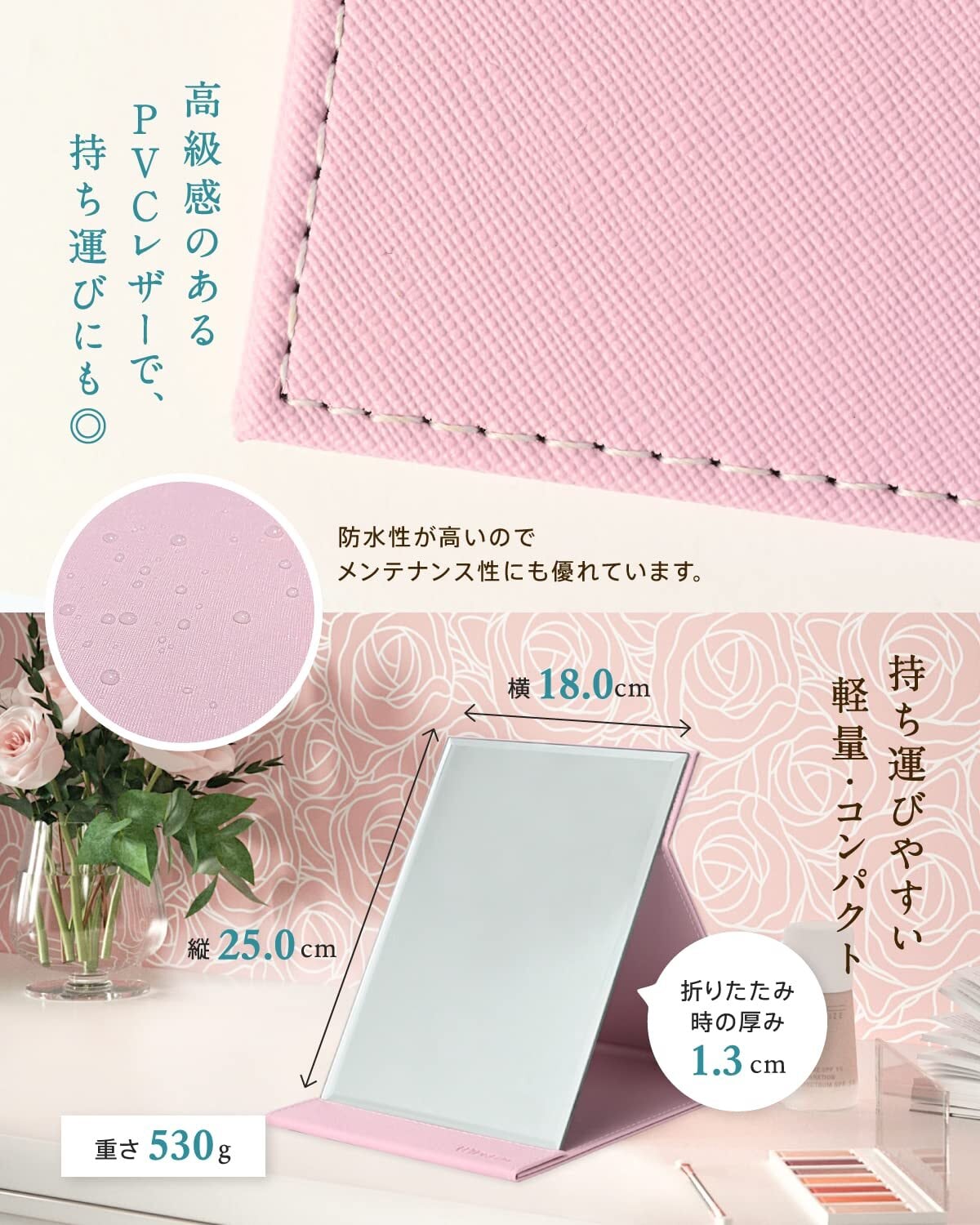 【人気商品】WIDREAM【メイクアップアーティスト監修】角度自在調整&他社より1サイズ大きい鏡面の折りたたみ折立鏡 鏡 卓上鏡 スタンドミラー コンパクトに折りたたんで持ち運びにも◎(役立つメイクminiブック付属) (ライトピンク, L) | カウカウ物販