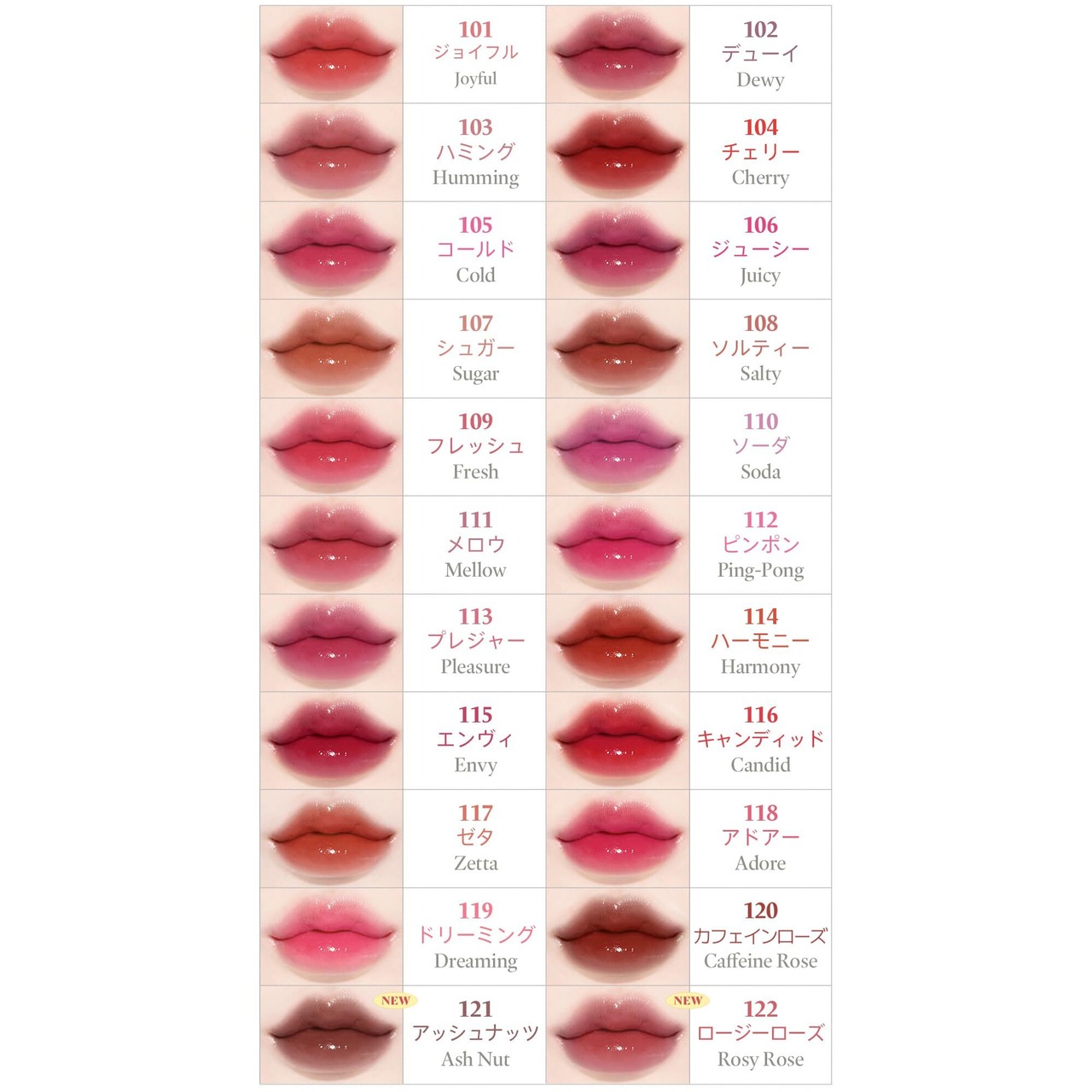 【高保湿&高光沢テクスチャー】水のようにサラッとした軽やかなつけ心地。唇の温度に反応してふっくらと潤い、透明感のある光沢をもたらします。