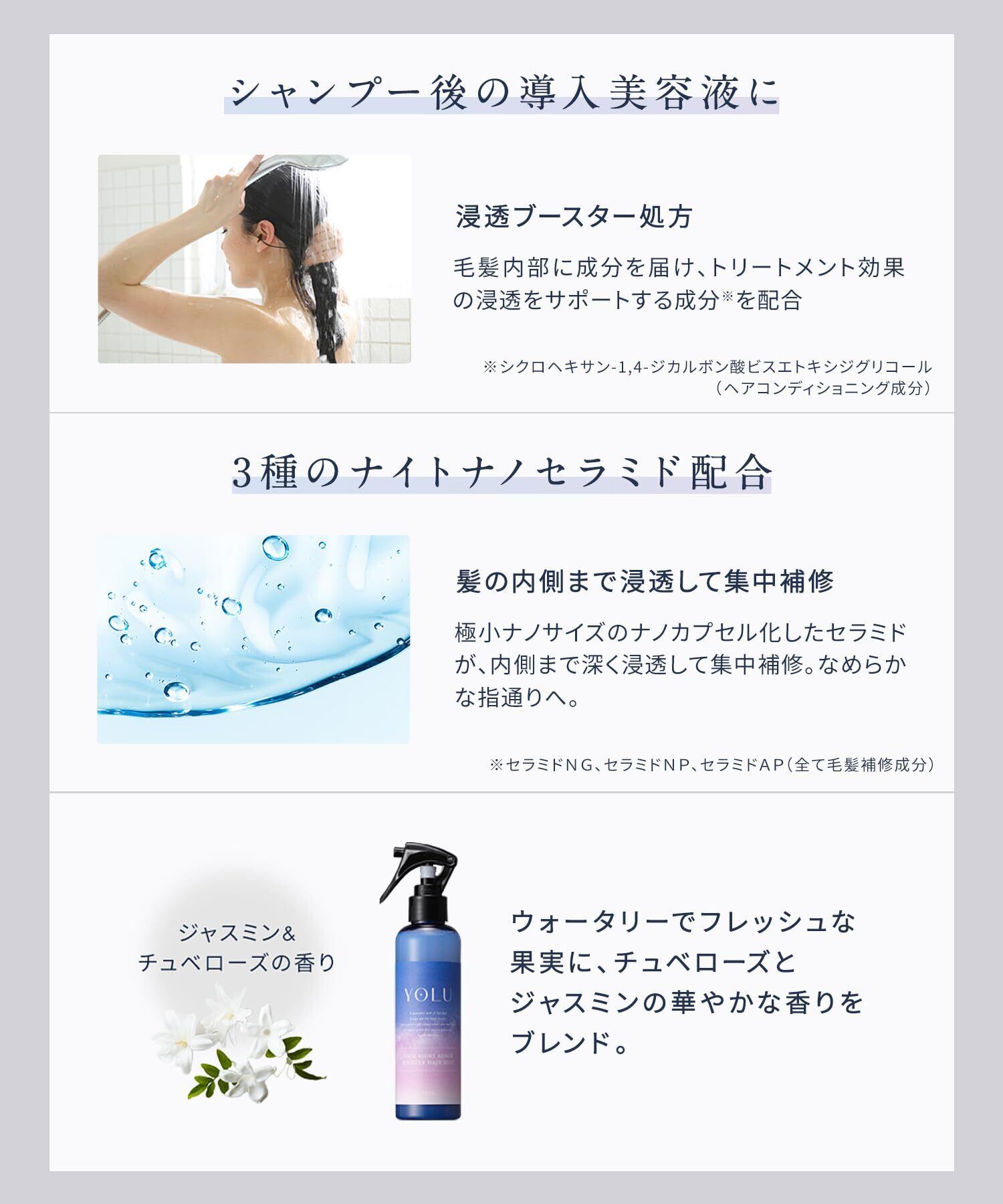 商品特長 YOLU独自の夜間美容でうるツヤ髪に導きます。