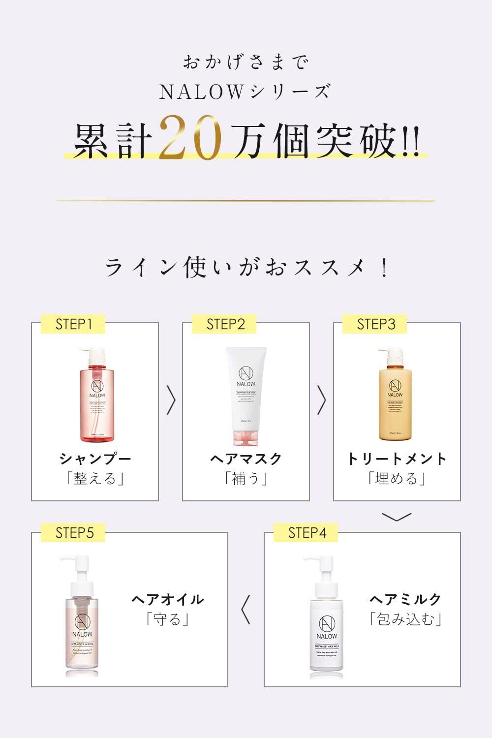 【こんな人におすすめ】広がってまとまらない、ハリ・コシがない、髪がかためでゴワつくなどの悩みありませんか?NALOWのヘアミルクなら内側と外側からアプローチし指通りの良いサラサラな髪へと導きます。