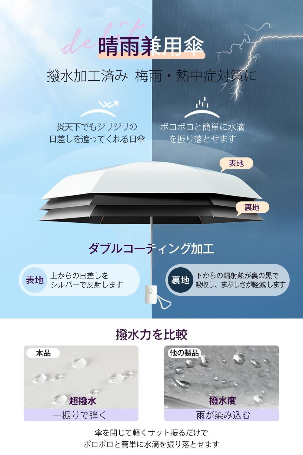 【超軽量・コンパクト折り畳み日傘】軽くて丈夫なグラスファイバーとアルミ合金傘骨を採用し、構造材を最適化した折り畳み日傘です。通常より軽量化され、重さ240g、折り畳んだらわずか4cmとスリムサイズ、バッグにかさばらずにすっぽり入り、携帯に便利!通学通勤など毎日持ち歩いても負担にならない、夏フェス、スポーツ観戦、ライブ、野外イベント、キャンプ、登山、遠足、旅行、アウトドア活動など、屋外でも快適に過ごせる暑さ対策グッズ。