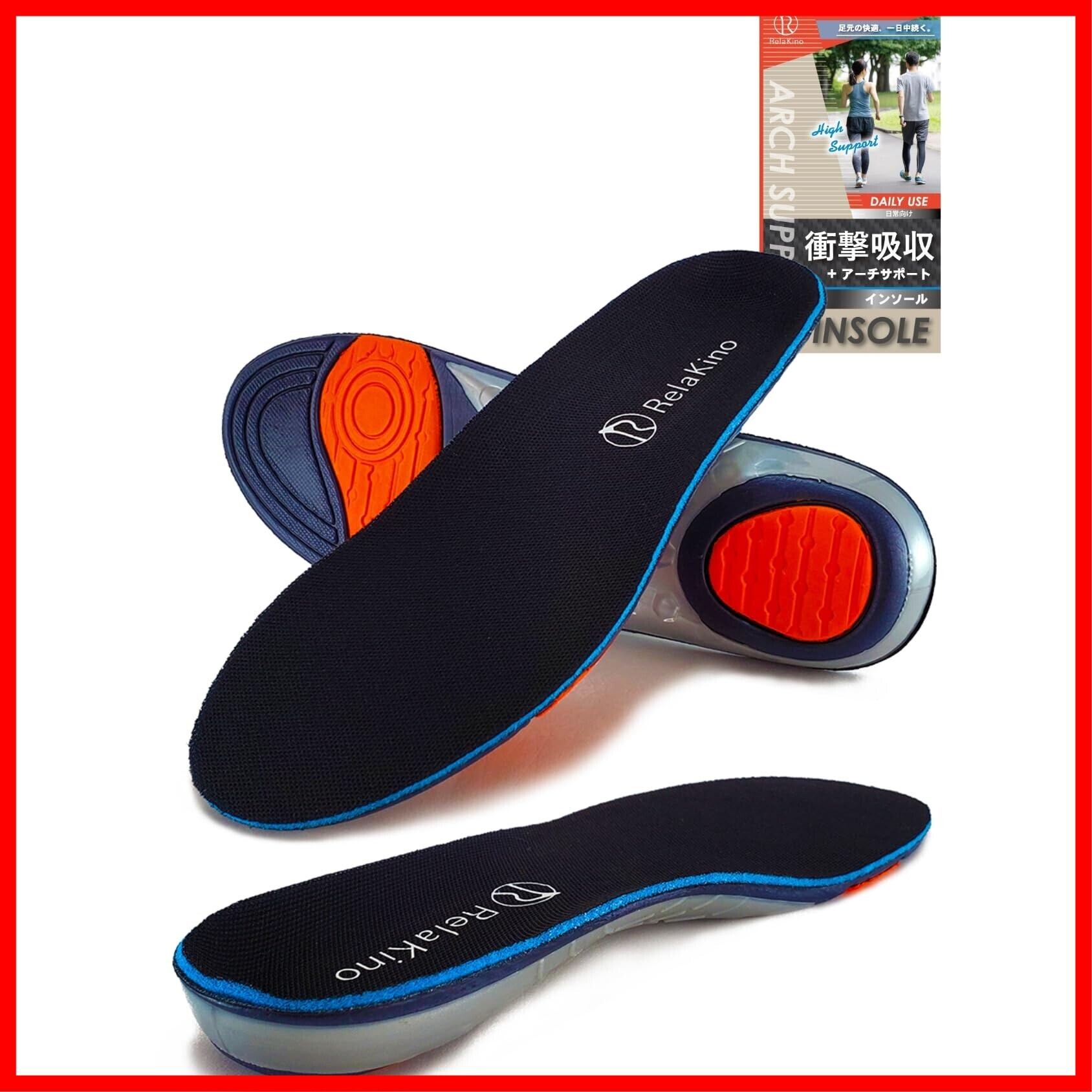 Rela Kino インソール [1日中快適] 理学療法士監修 中敷き 衝撃吸収 アーチサポート 男女兼用 (21.5-23.5cm, 黒)