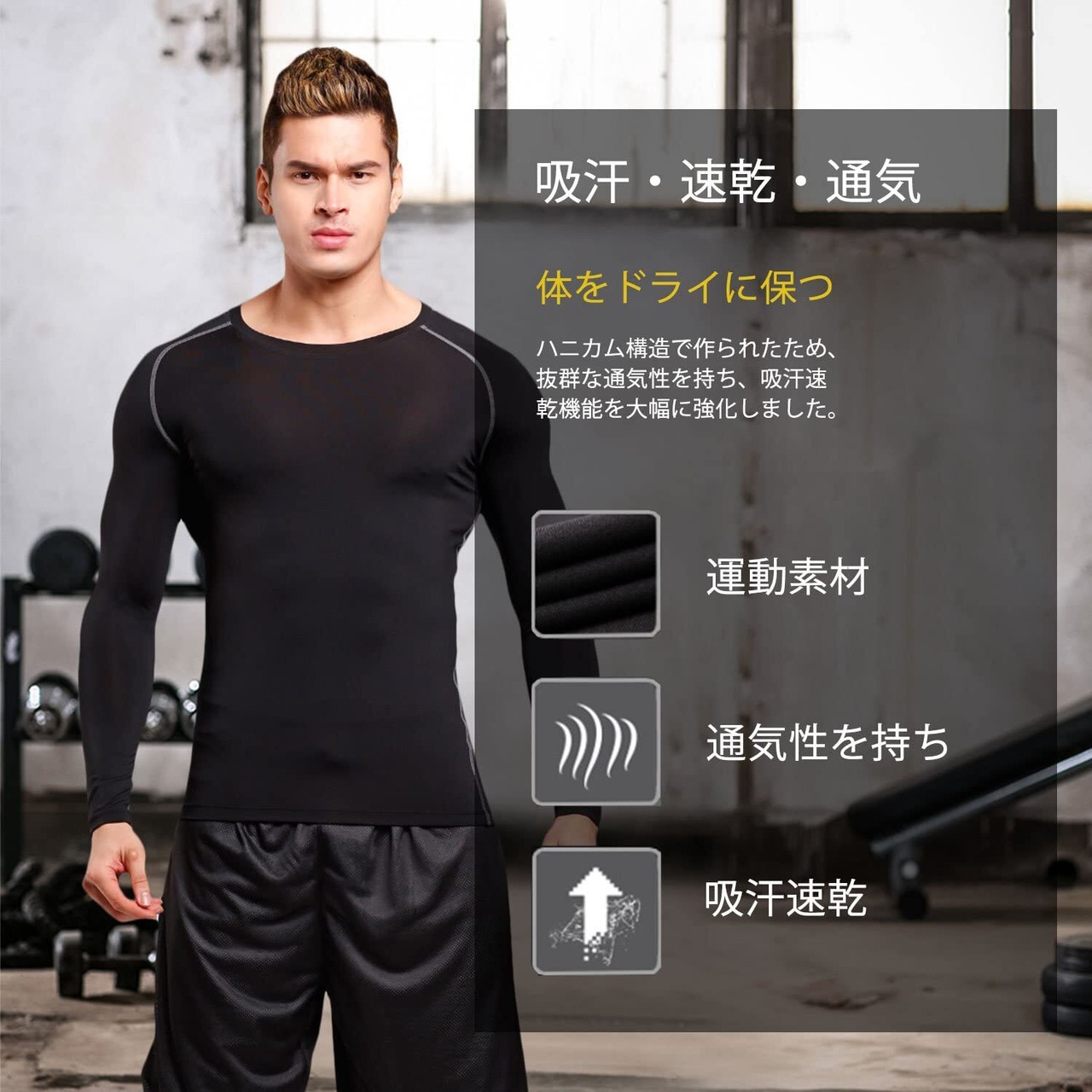 sillictor コンプレッション トップス メンズ 長袖 パワーストレッチ アンダー シャツ コンプレッション ウェア [UVカット + 吸汗速乾]