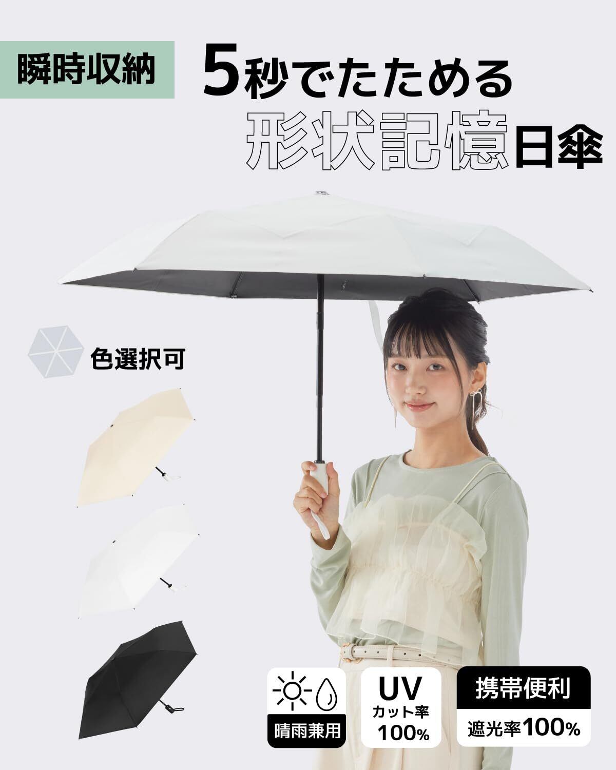 【 5秒でたためる傘】形状記憶 日傘 UVカット率 100% 晴雨兼用