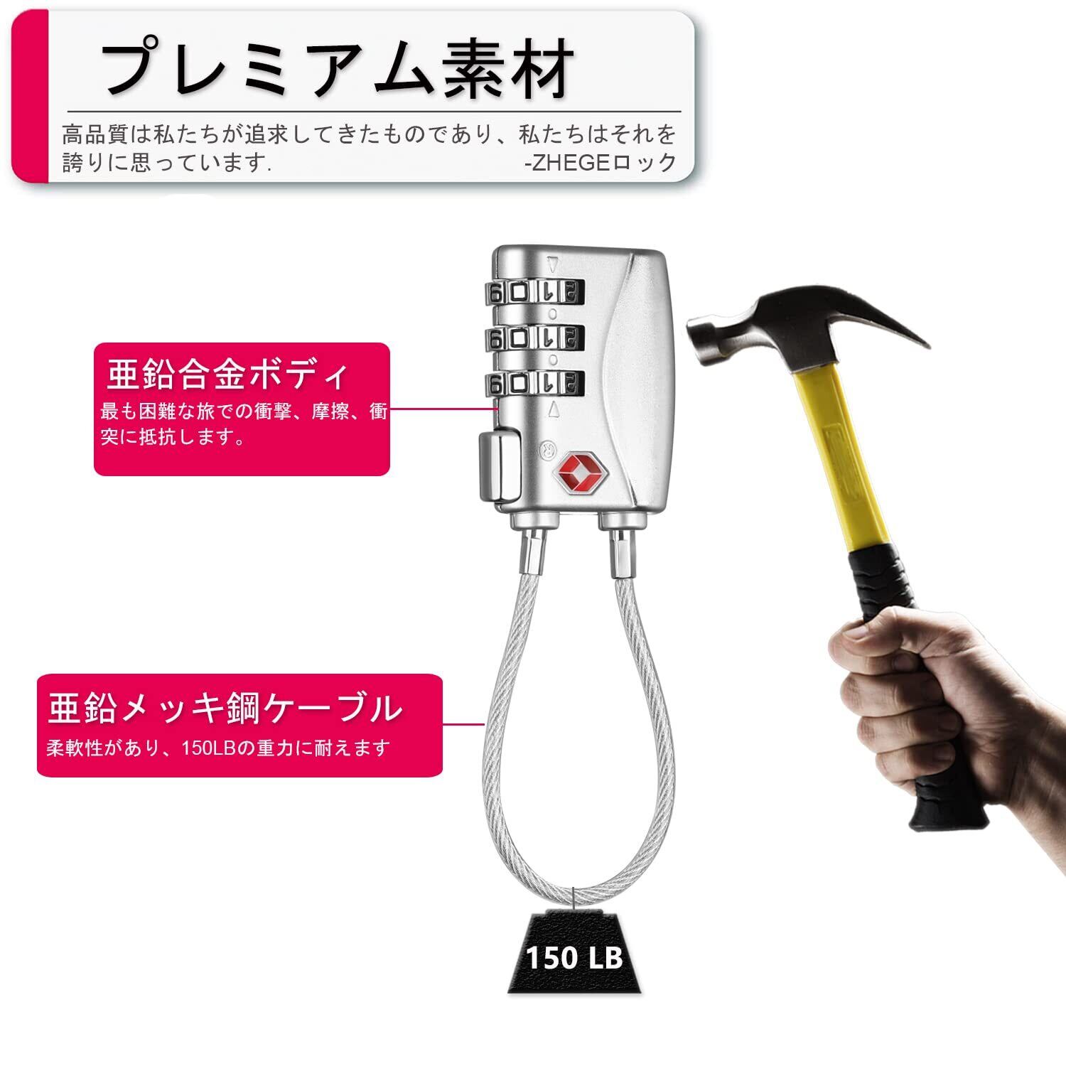 ZHEGE TSA南京錠 ワイヤー 旅行 ダイヤル式 ワイヤーロック 暗証番号 荷物、スーツケース、バックパック用