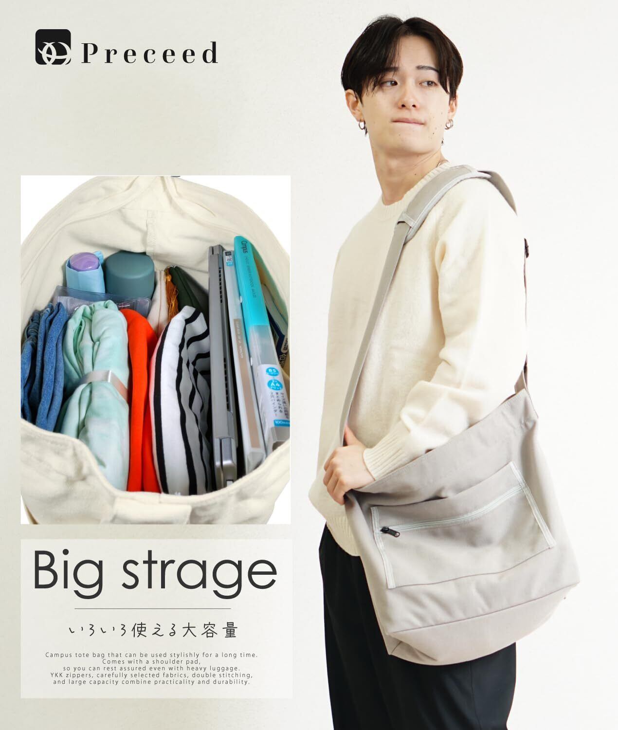 キャンバス 【徹底的にこだわった品質 】従来の品質を超える Preceed(プレシード)限定 キャンバス トートバッグ が登場。バッグが重くなっても安心「脱着可能ショルダーパッド」を付属。すぐ取りたい物を分けて収納できる「大容量内ポケット」に加え、厳選された「高品質キャンバス生地」と安心の高耐久「YKKファスナー」を採用。学生カバン メッセンジャーバッグ エコバッグ 旅行バッグ ショルダーバッグ 、本製品1つでマルチに活躍します。