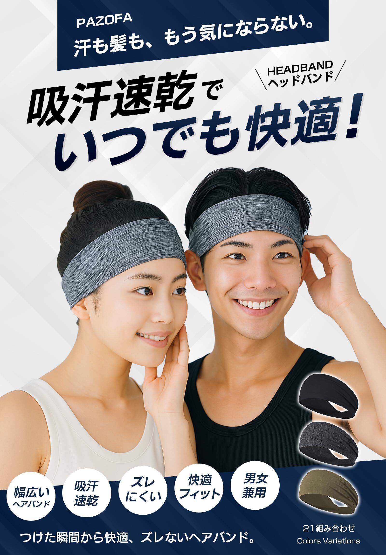 ■【肌触り抜群】 素材は伸縮性が高く、頭囲60以上の方でも強すぎる締め付け感を感じることなく着用していただけます。 サラッとした素材ですので、肌が擦れて痛くなりにくいです。男性だけでなく、女性も使用できるヘッドバンド。