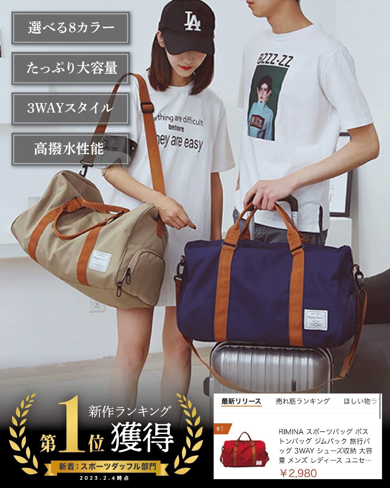 RIMINA ボストンバッグ 【雑誌掲載!ポケット改良】 旅行バッグ ジムバック スポーツバッグ 3WAY シューズ収納 大容量 メンズ レディース ユニセックス 乾湿分離 アウトドア 機内持込
