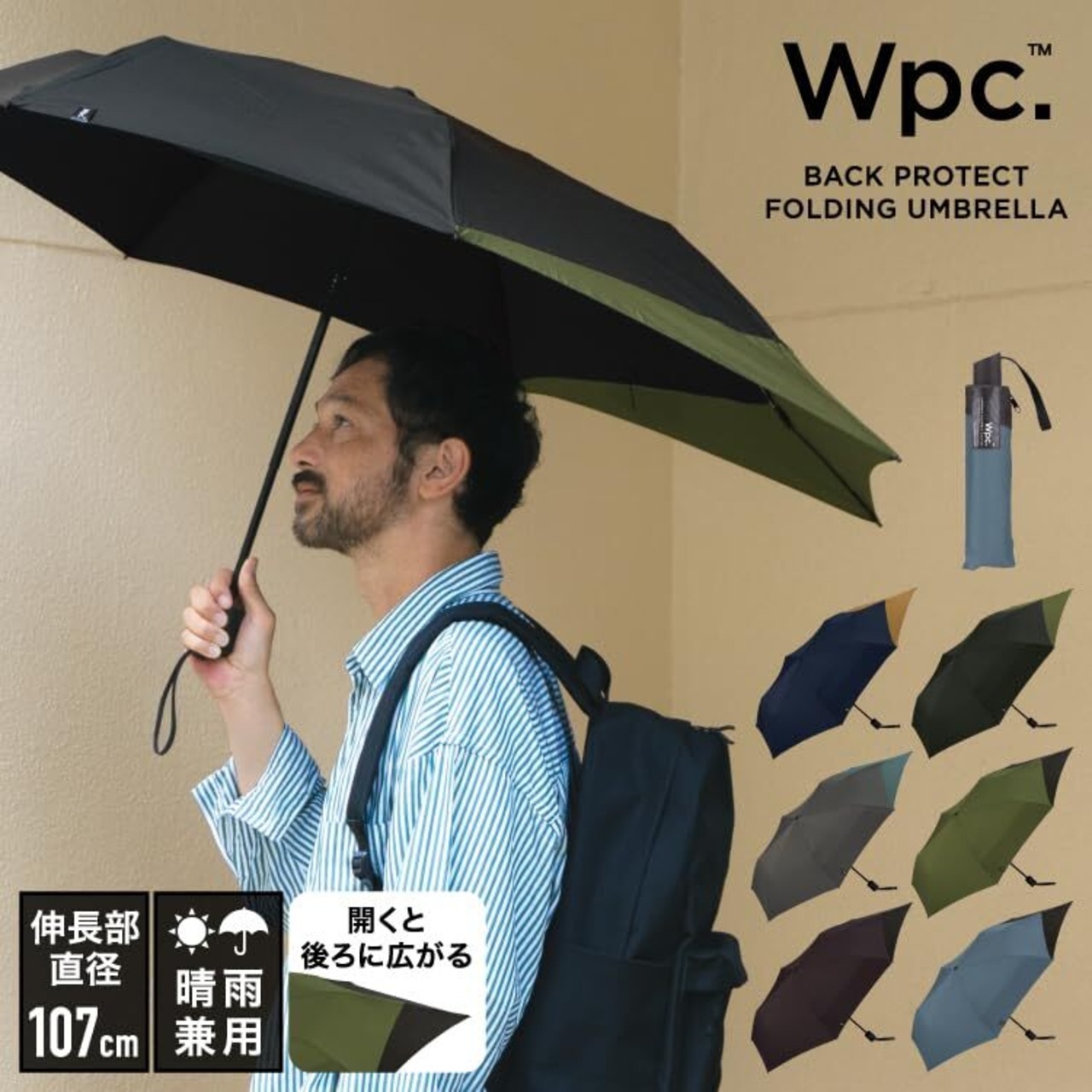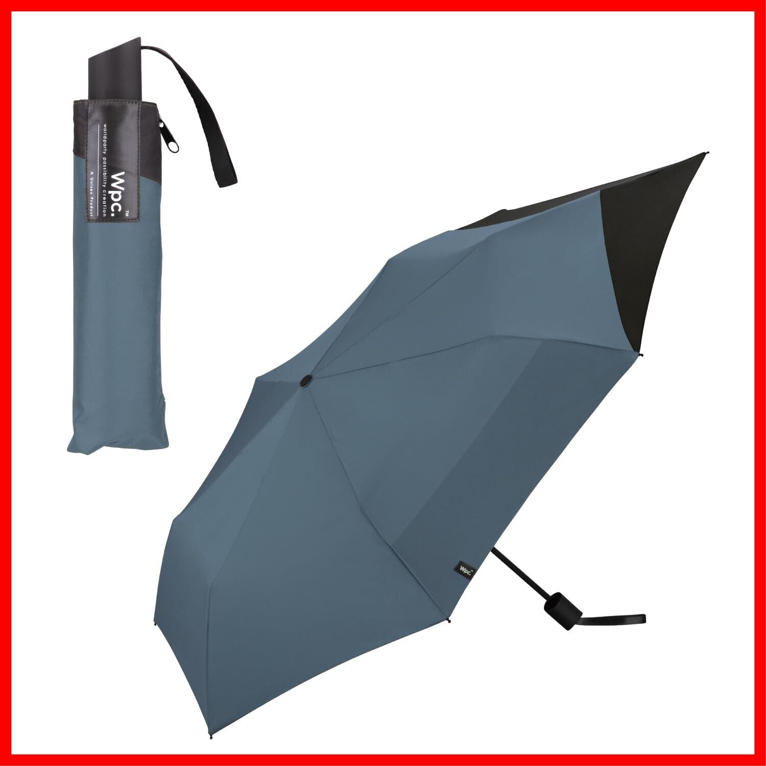 Wpc. [リュックが濡れない] 折りたたみ傘 BACK PROTECT FOLDING ブルーグレー×ブラック 雨傘 晴雨兼用 55cm 大きい メンズ 男性 バックパック 後ろが長い 通勤 通学 シンプル おしゃれ UX004-969-002