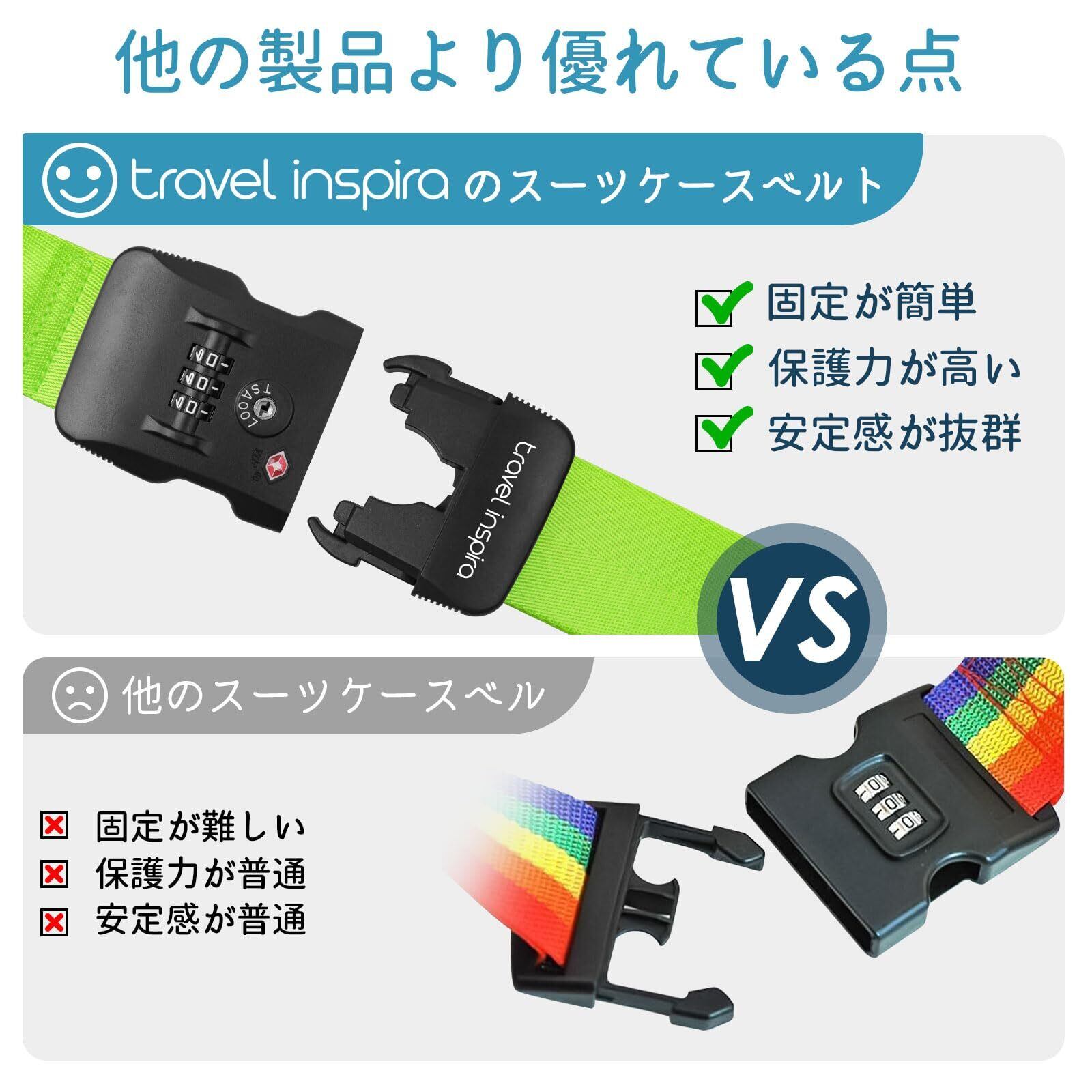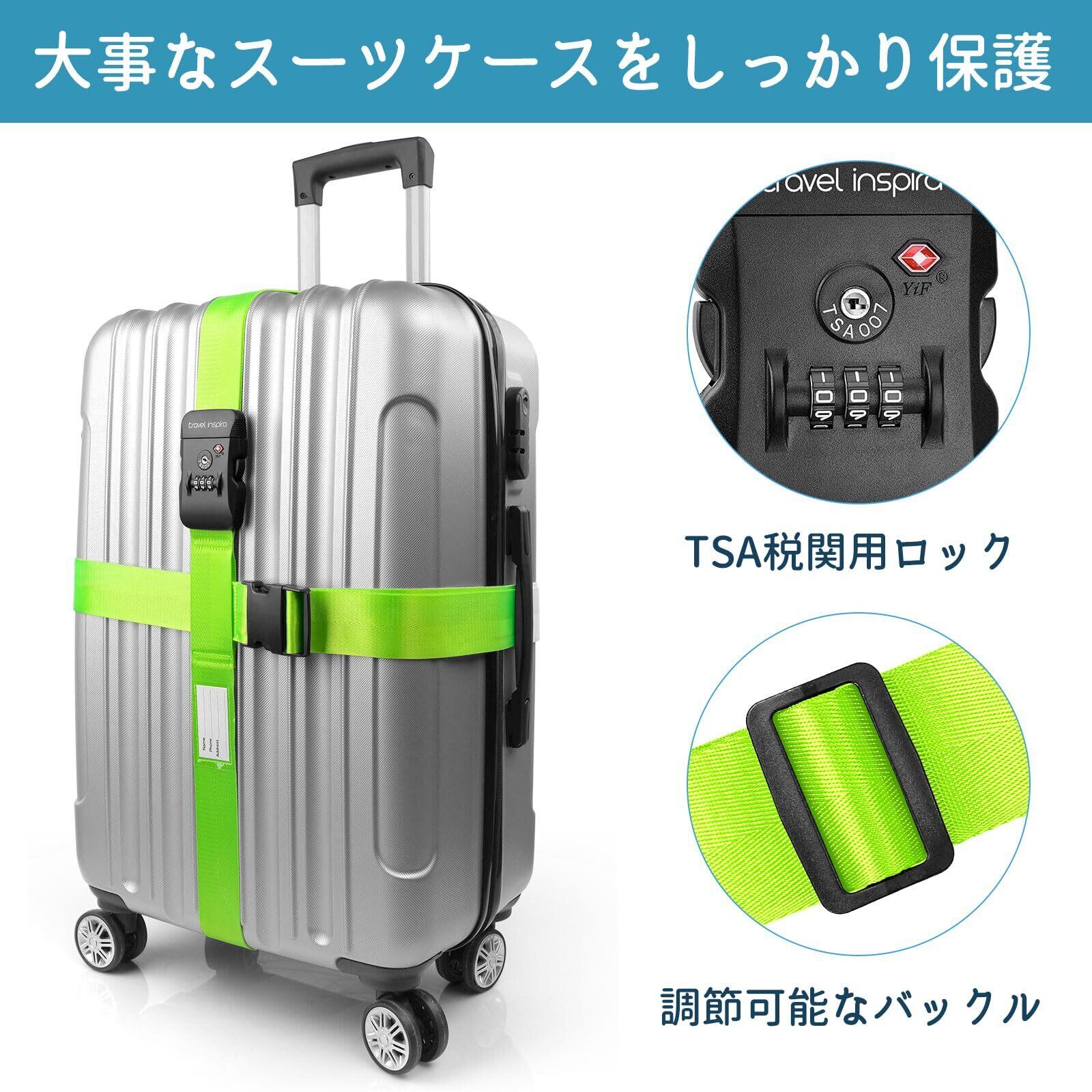 Travel Inspira【TSAロック】スーツケースベルト 旅行 便利グッズ 荷締めベルト バンド 荷崩れ防止・調整可能 I字型 十字型 軽量 3桁ダイヤル式 固定ベルト ずり落ち防止 旅行/出張に最適 (十字型, グリーン)