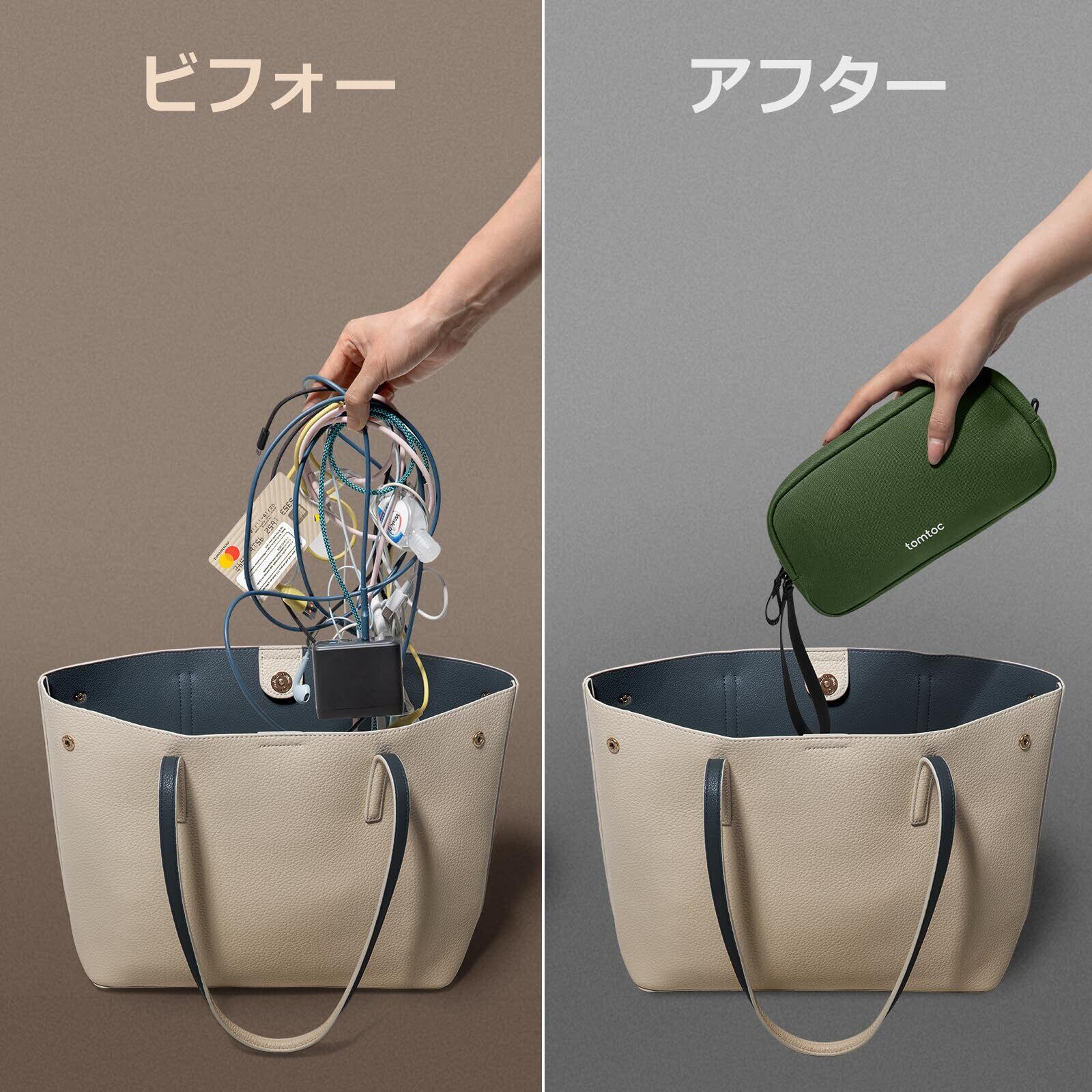 【在庫セール】tomtoc ガジェットポーチ 小型 トラベルポーチ ガジェットケース 自立 軽量 小物入れ PC周辺小物 DJI Osmo Pocket 3用ケース バッグインバッグ ケーブル SDカード イヤホン収納 通勤 通学 出張 お出掛け オフィス 旅行 便利グッズ 撥水 グリーン | カウカウ物販