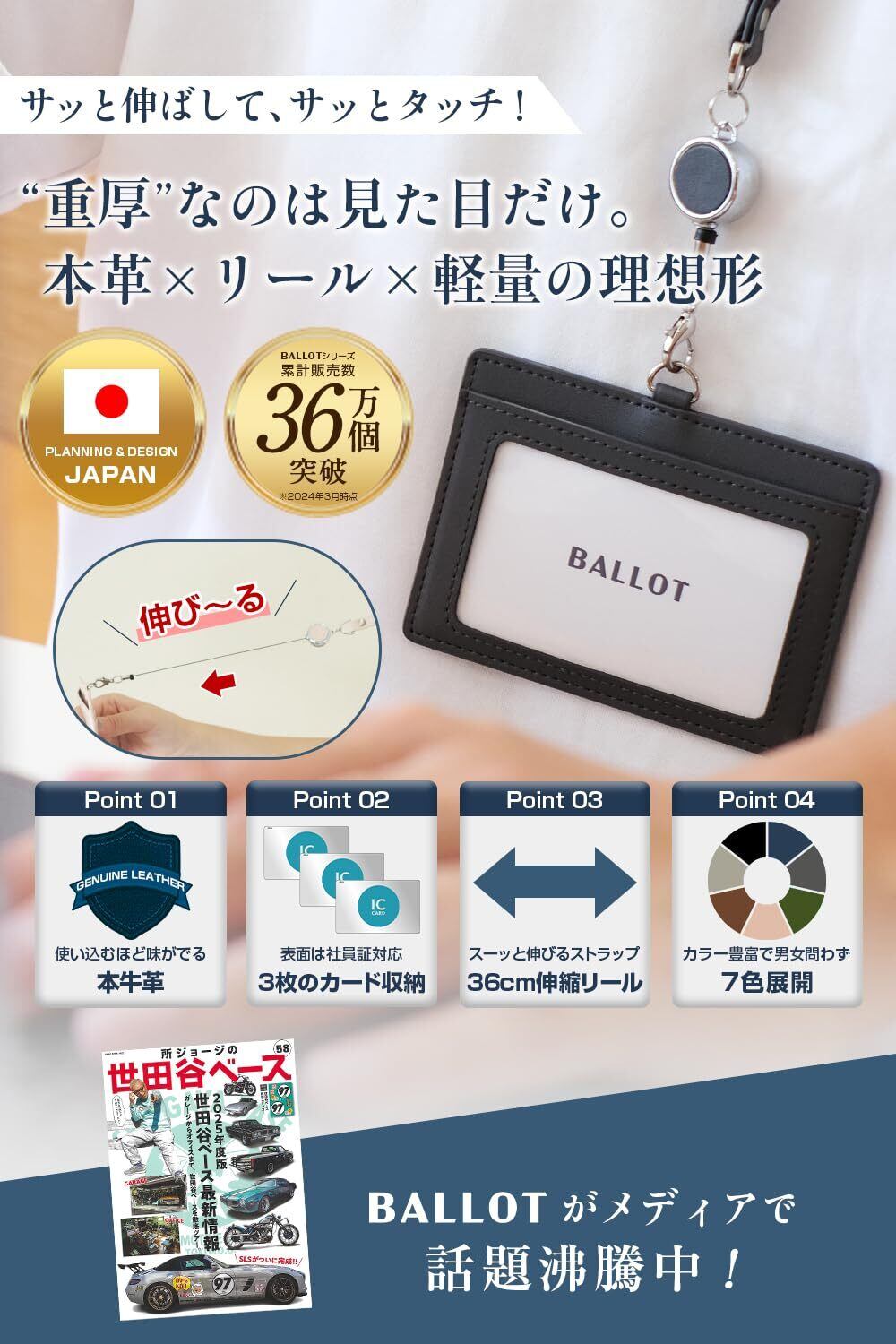 BALLOT [スーッと伸び〜る] 本革 IDカードホルダー ネームホルダー 横型 パスケース ネックストラップ 伸縮リール付き (ブラック)