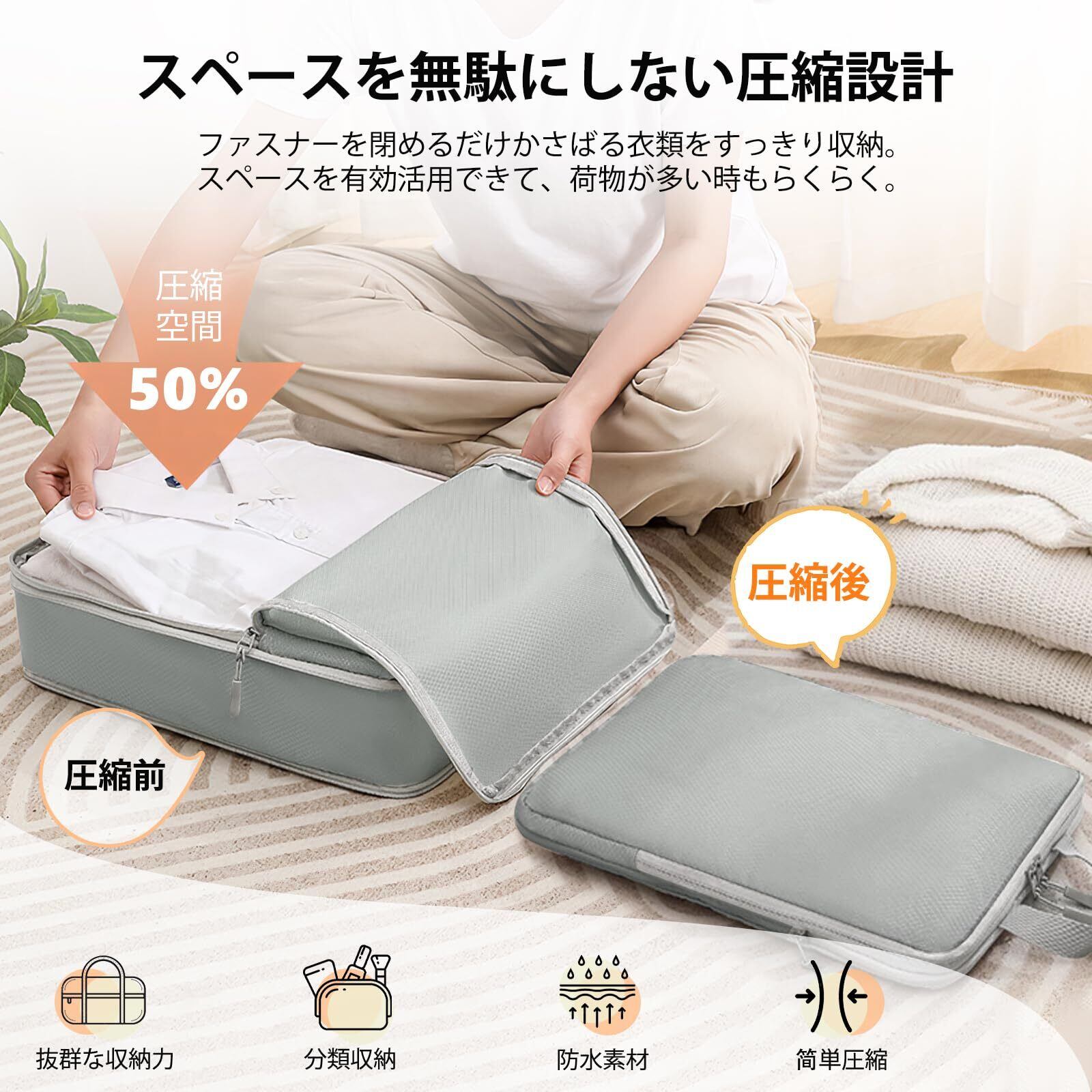 【簡単圧縮&50%スペース節約】圧縮用の吸引機などは不要で、ファスナーを閉めるだけで簡単に衣類を圧縮できるトラベルポーチです。2つの圧縮ジッパーを採用して、衣類スペースをより多く節約でき、約50%節約することができます!かさばる衣類や荷物を圧縮して、スーツケース内がすっきり整理整頓されます。
