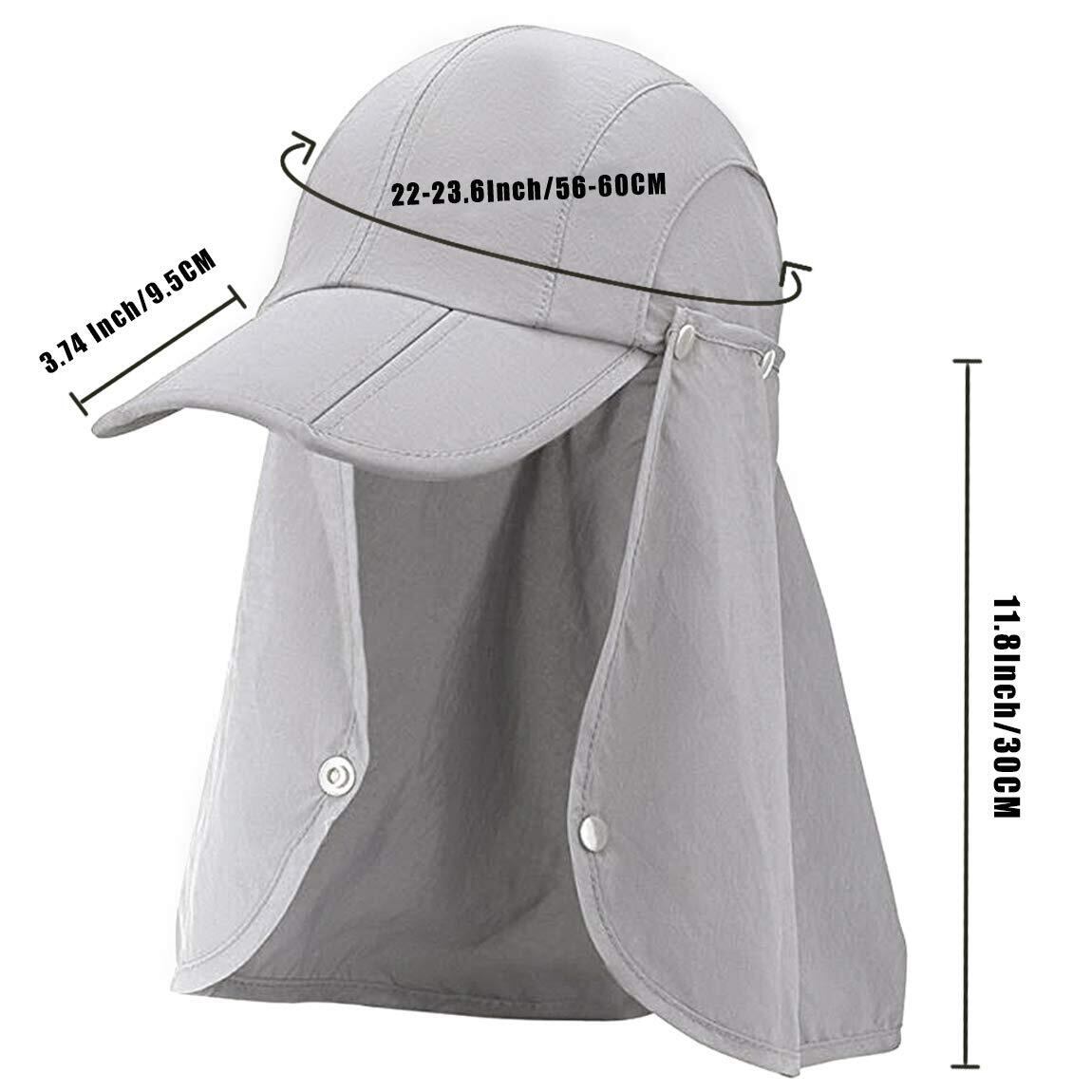 iBasingo アウトドア UVカット 帽子 3Way 360度UVカット 日除け 折りたたみ可能 紫外線対策 花粉対策 取り外し可能 フェイスカバー スポーツ 登山 農作業 ガーデニング キャップ ランニング 釣り メンズレディース兼用 BVH19