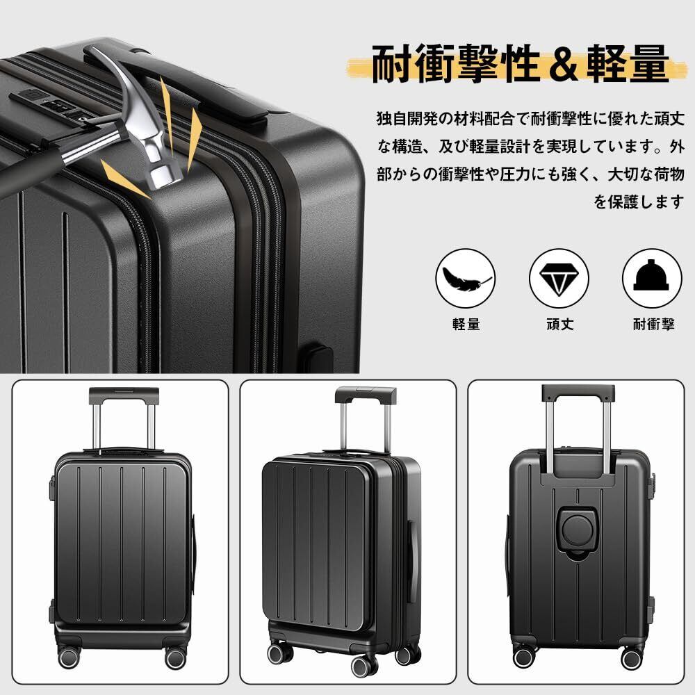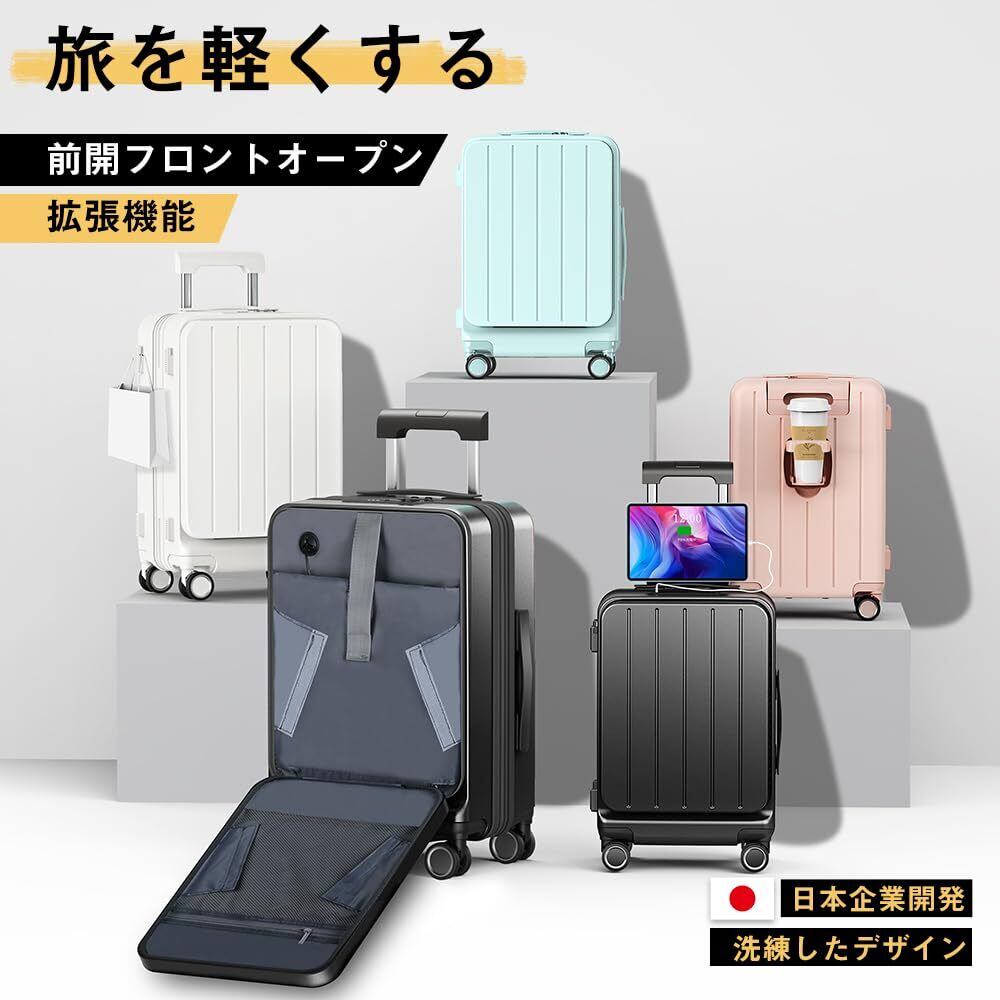 【特価セール】[Atzone Ginza] スーツケース 拡張機能付き キャリーケース フロントオープン 軽量 キャリーバッグ 大容量 超軽量 USBポート付き カップホルダー付き 隠しフック機能 ファスナータイプ 静音 ダブルキャスター TSAローク海外 キャリー ケース 人気 おしゃれ 旅行 ビジネス 出張 入院 (ブラック, Sサイズ機内持込OK /42L(1~3泊))