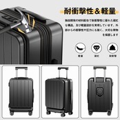 【全開フロントオープン・USB充電ポート付き】全開フロントオープンの キャリーケース は 立てたまま荷物の出し入れができる。PC、タブレット、書籍、携帯電話、チケットなど、荷物に合わせた細かなポケットも用意し、フロントポケット内の荷物の仕分けもラクラク。新幹線の中でも、旅の途中でも、こちらの スーツケース はフロントポケットから出したいものを簡単に取り出すことができ、ビジネスシーンにも活躍しています。また、 キャリバッグ は便利なUSB充電ポート付き、場所を選ばずいつでもどこでも移動しながら効率よく充電ができます。