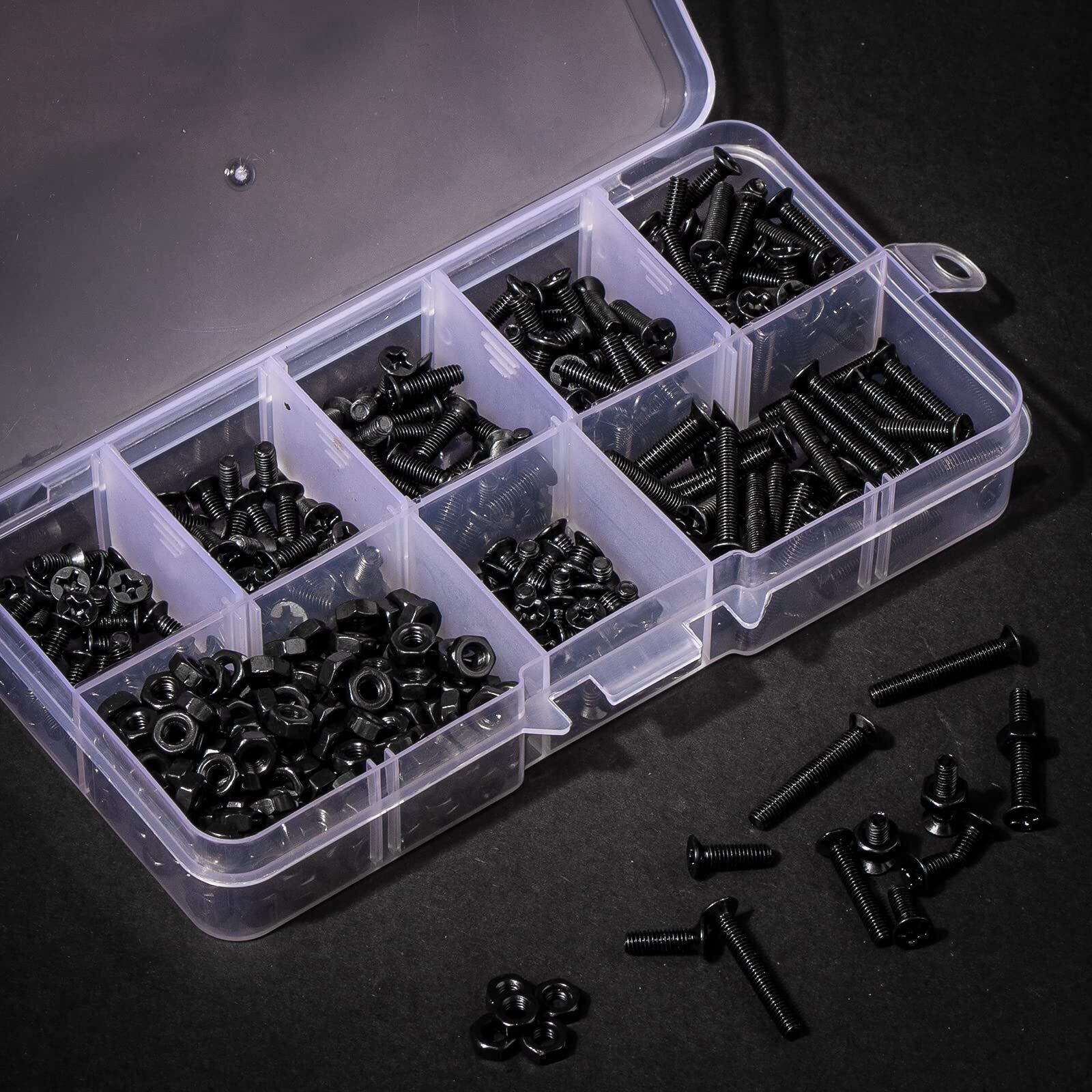 便利な箱の中に480個のM 3平頭十字機ネジとナットを手に入れ、保管しやすく、自宅や仕事で使用するのに十分な数の