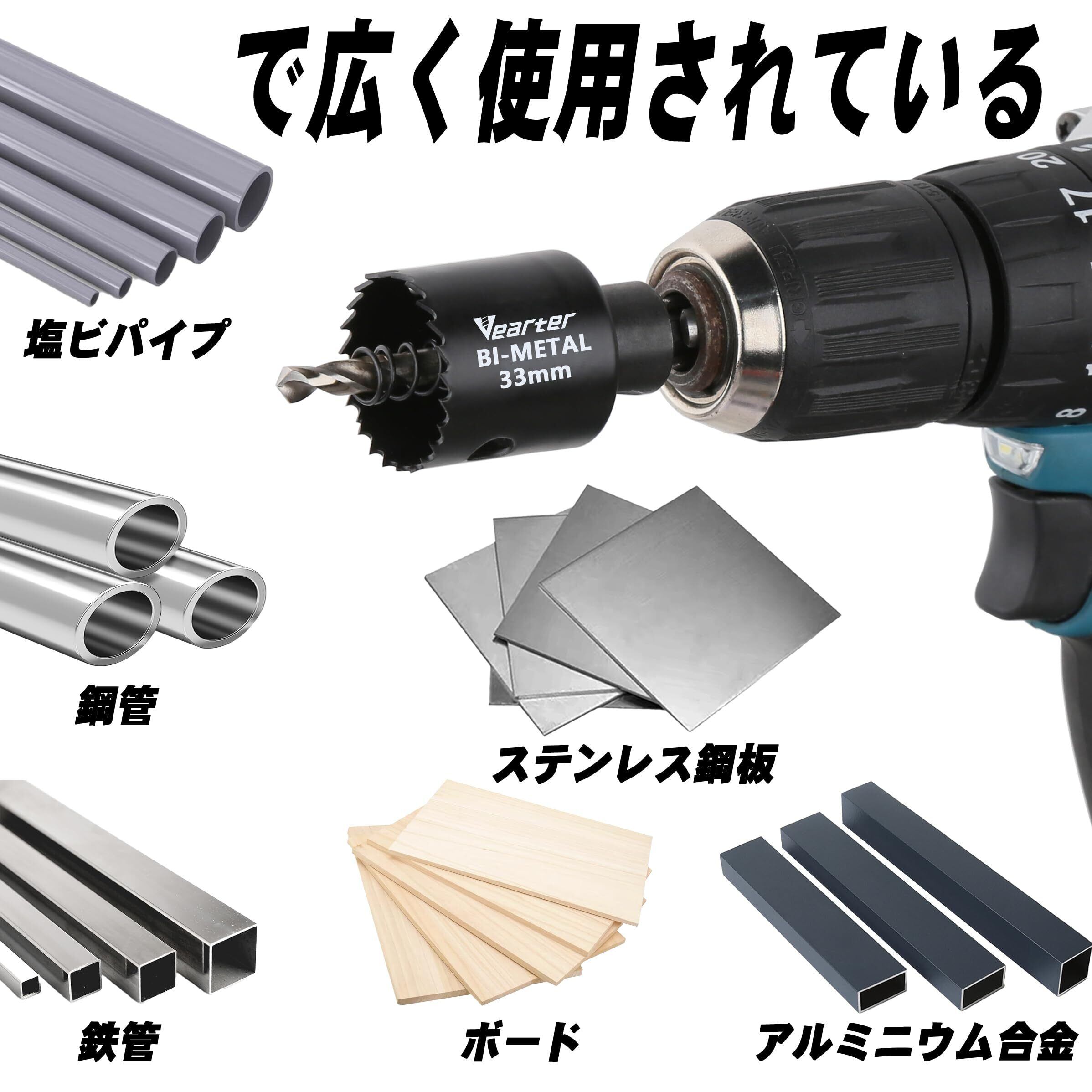 速くてきれいな切断 - 穴開けドリル鋸バンドの幅はわずか1mmなので、より速くきれいに切断できます。 また、六角シャンクアーバーは小径から大径まであらゆるサイズの金属・木材ホールソーに適合し、作業効率を大幅に向上させます。