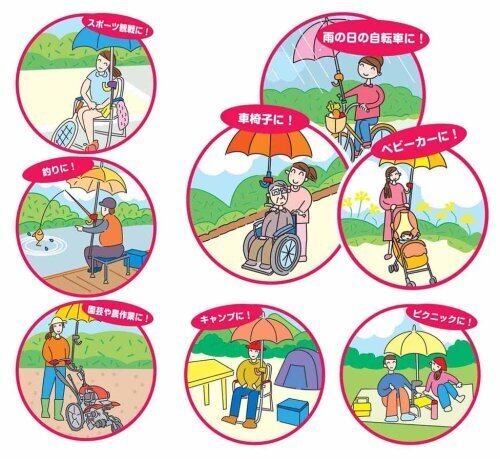 ●どこでもさすべえワンタッチタイプは自転車、車椅子、ベビーカー等に取り付けて傘を固定