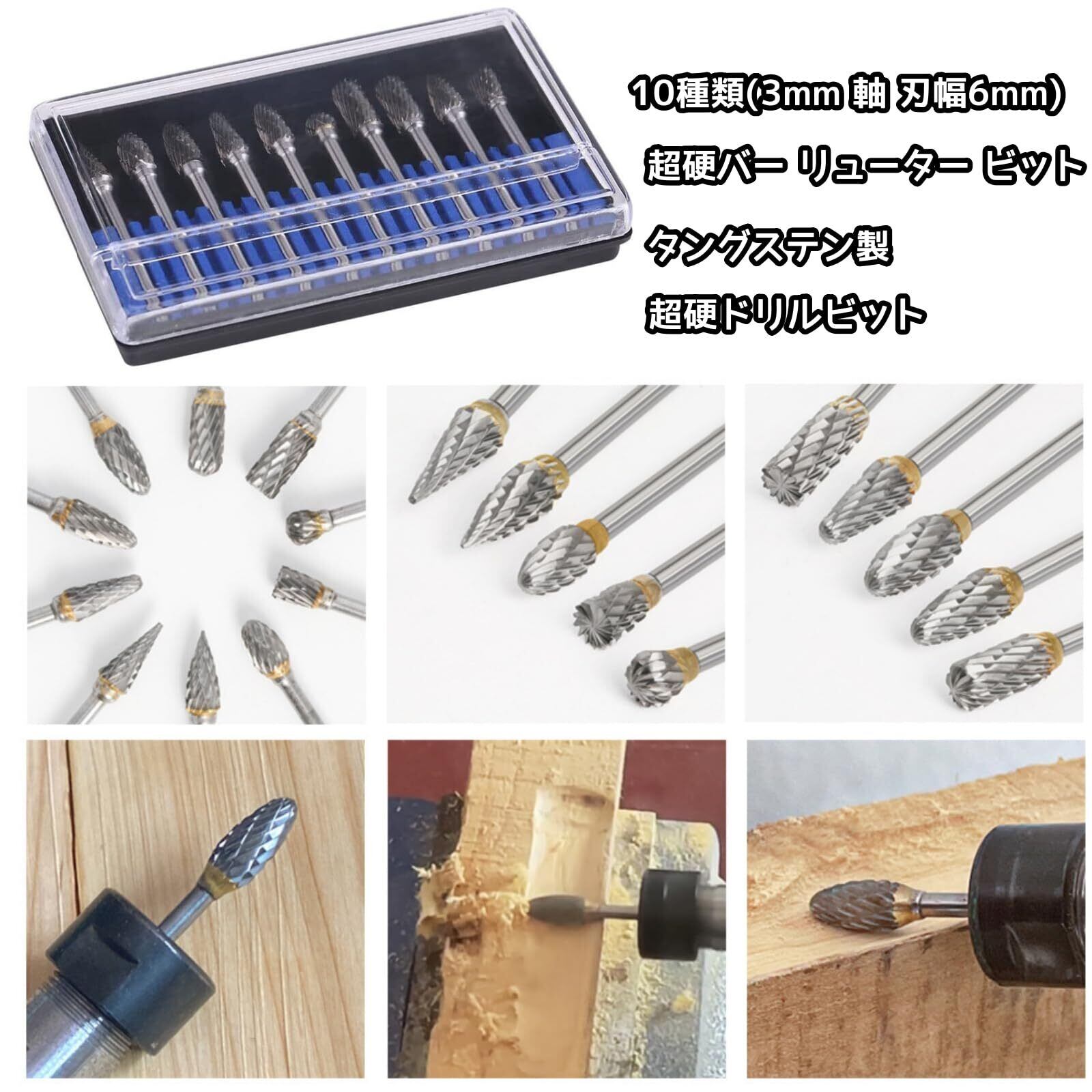 【人気商品】YWHWLX 超硬バー リューター ビット 10種類(3mm 軸 刃幅6mm) タングステンバー ミニルーター ビット 超硬ドリルビット 超硬カッター 木工 穴あけ 彫刻 バリ取り 研磨用 10本セット | カウカウ物販