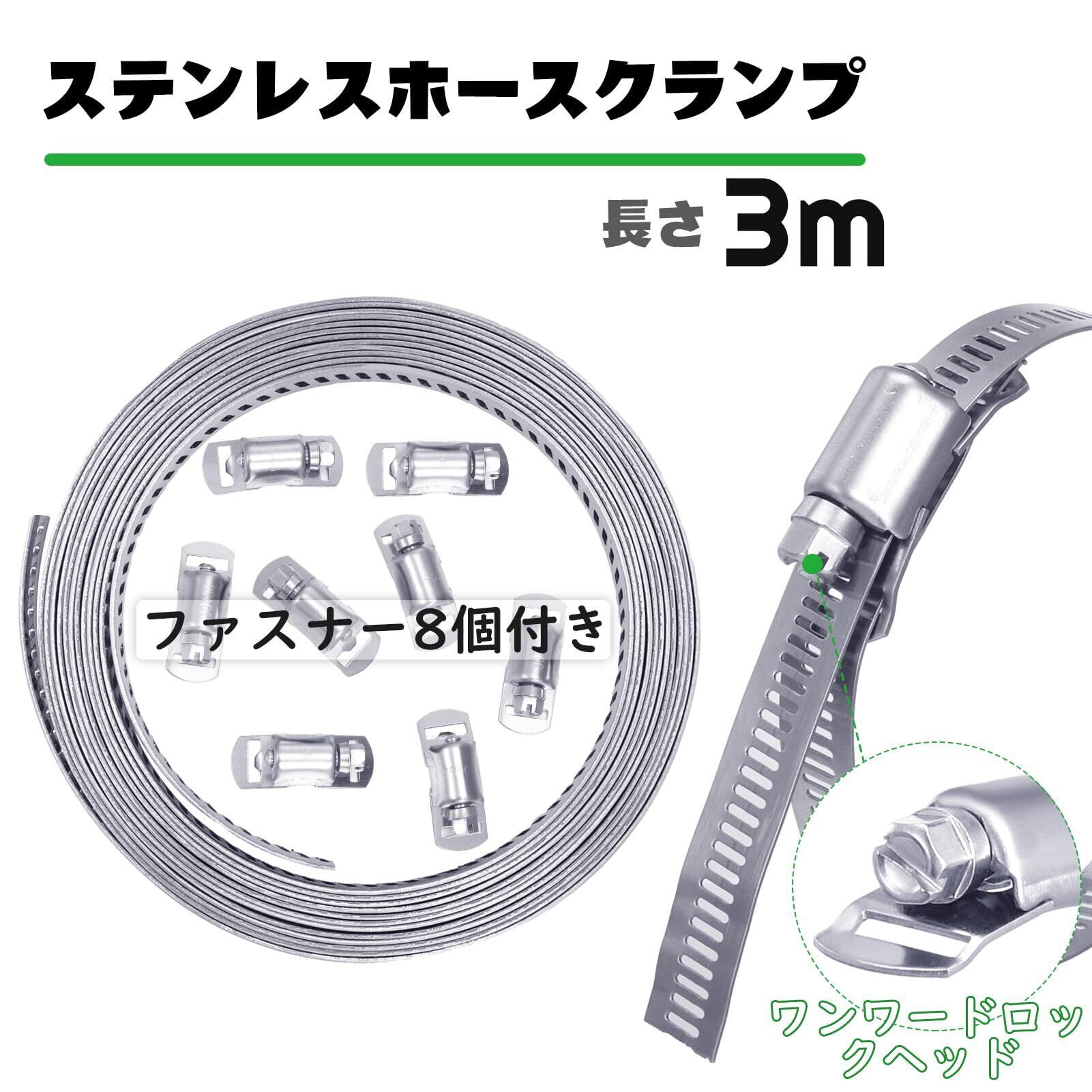 Hitchlike ホースバンド ステンレス 長さ3m 調整可能 ホースクランプ 強力固定 耐熱 ステンレスバンド 排気ダクト 配管用 ファスナー8個付き
