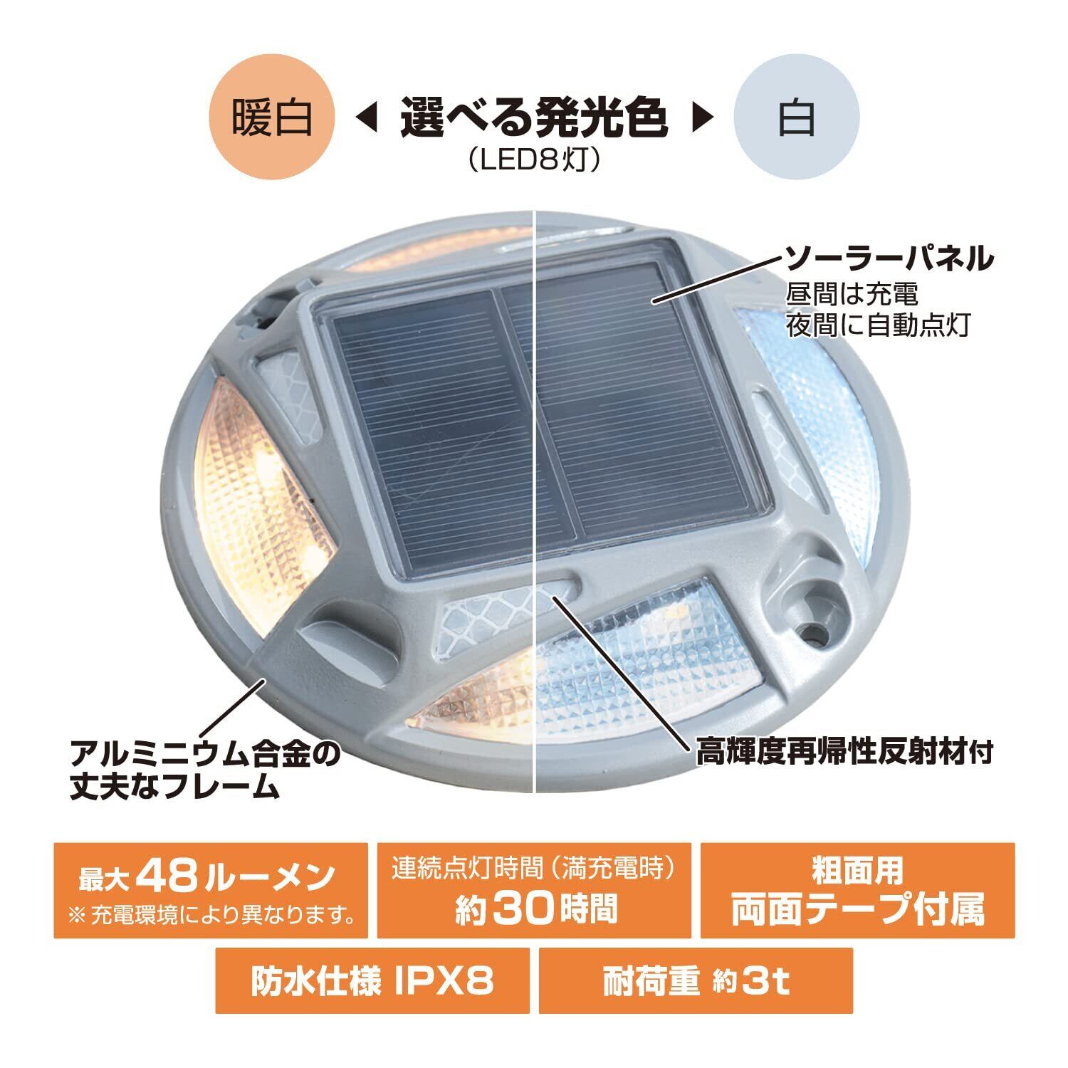 ◆LED8灯(暖白と白から発光色を選べる )◆ソーラーパネルで昼間は充電、夜間に自動点灯◆高輝度再帰性反射材付き