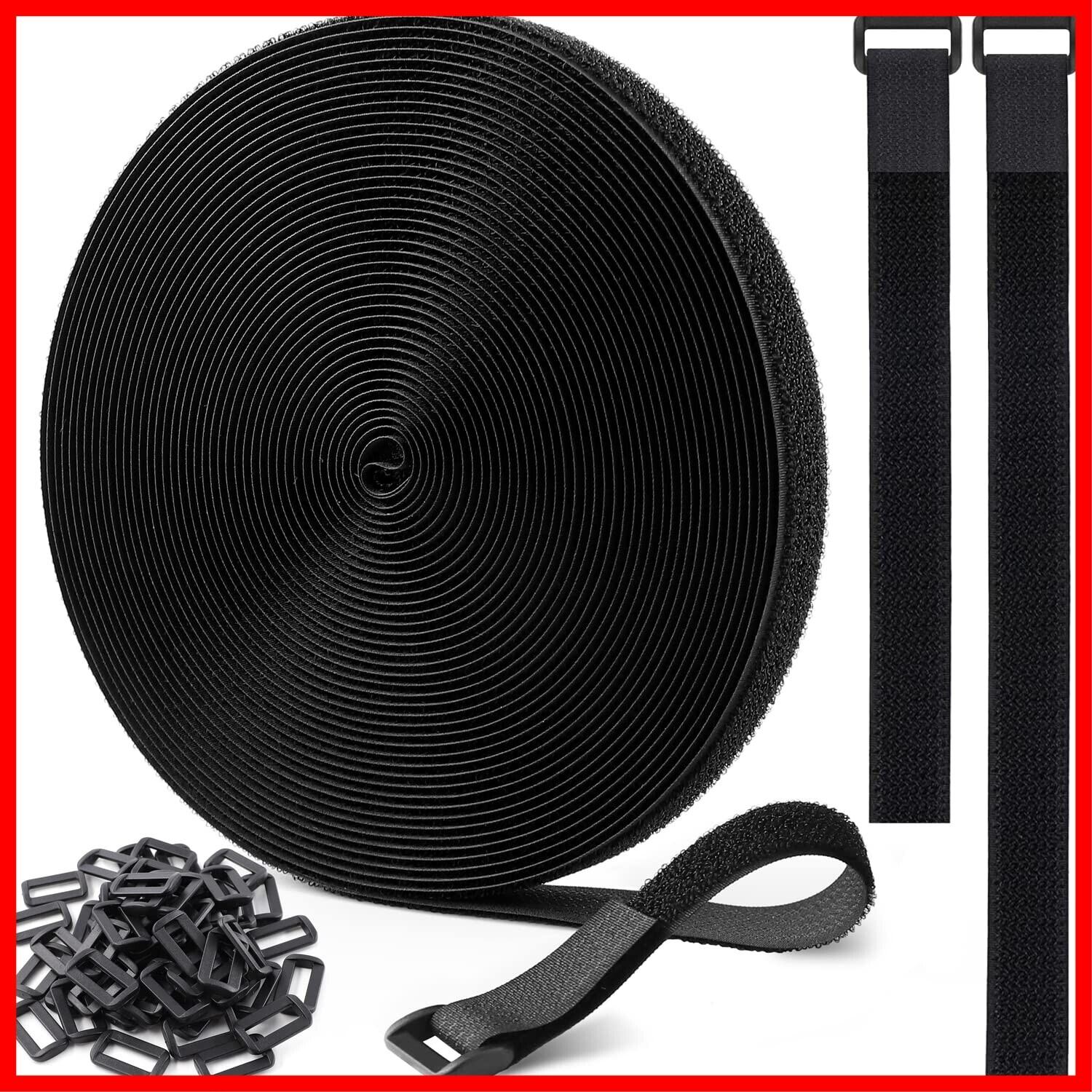【特価セール】マジック結束バンド 12.5m 幅2cm+バックル 60個付き、結束テープ 荷締めベルト 固定ベルト 結束マジック 面ファスナー テープ 強力 耐熱 配線整理 自由にカット 繰り返し 荷物梱包 収納用テープ(黒色) | カウカウ物販